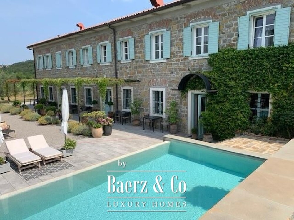 Villa for sale Osp is a meticulously restored 19th-century estate set in one of Slovenia’s most storied villages, where the Karst’s natural fortitude meets Istrian light. Within 539 m² of living space, the villa honors 130 years of history with considered contemporary design and advanced technology.
