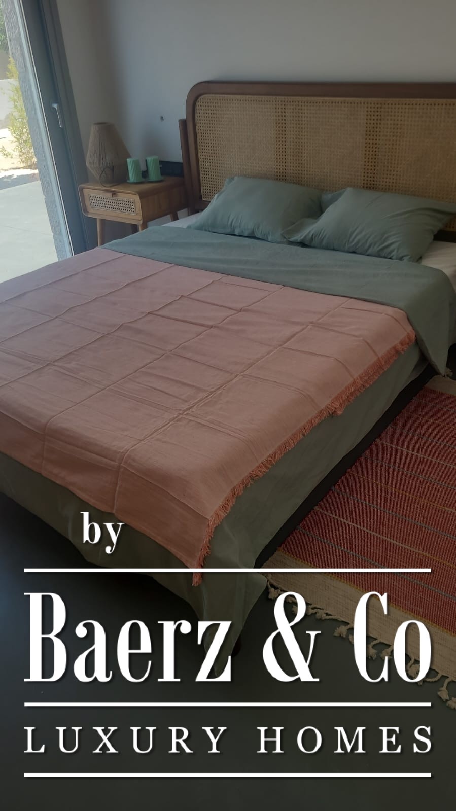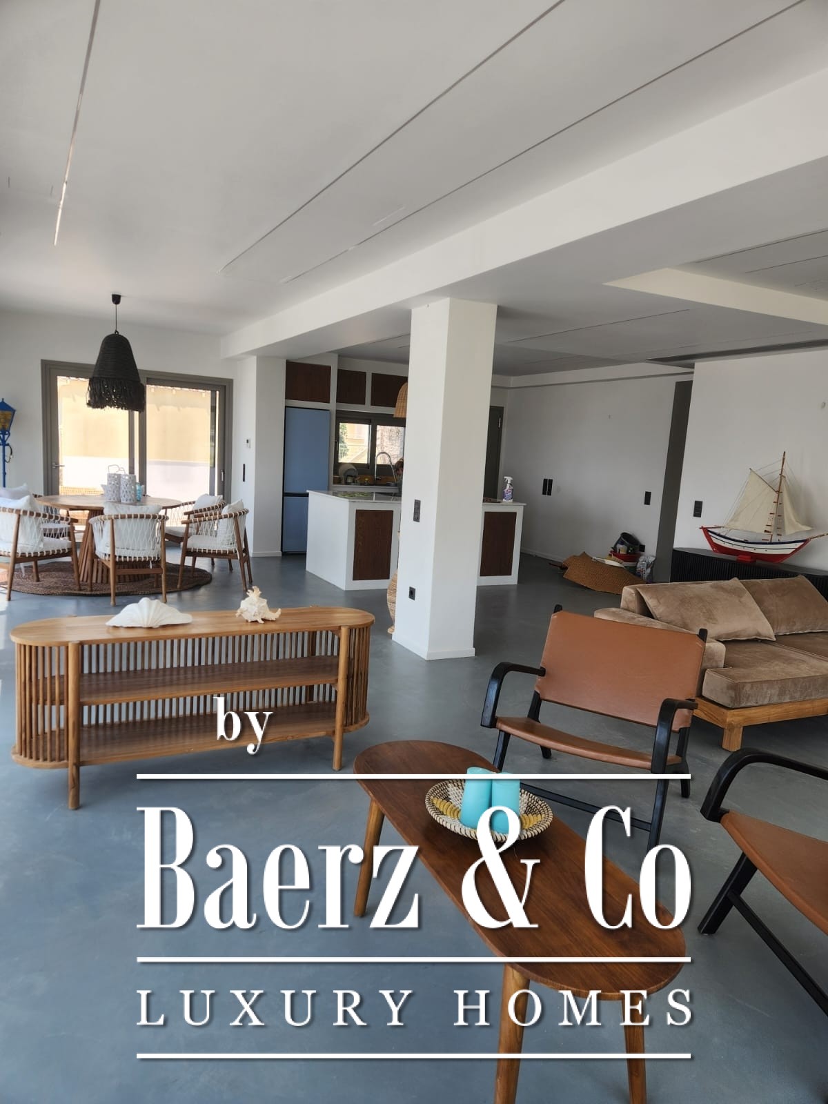 The villa features four master bedrooms, each designed for comfort and seclusion. Interiors are fully furnished with handmade Indonesian pieces, lending the space warmth and character, complemented by high end finishes and a contemporary aesthetic. Every detail, from the equipped kitchen to the carefully curated furnishings, is turnkey and ready for immediate enjoyment.