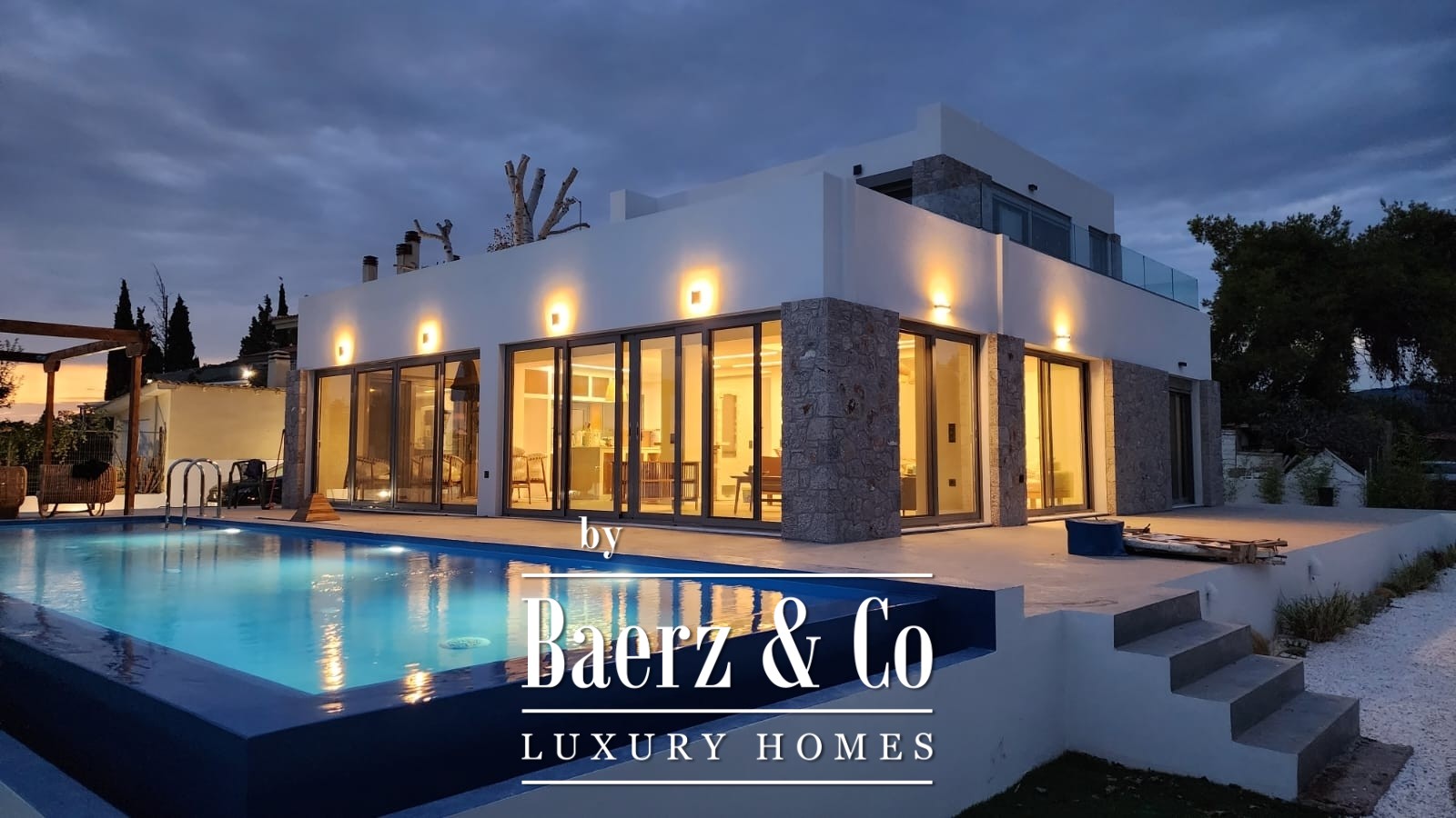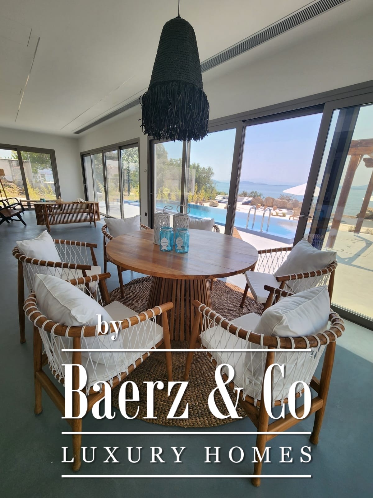 This beachfront villa Politika Beach stands directly on the shoreline, offering absolute privacy and uninterrupted sea views that frame the North Euboean Gulf. With no roads or barriers, the transition from home to beach is fluid, reinforcing a rare sense of tranquility and exclusivity. The property occupies a 1,000 m² private plot and provides 170 m² of living space focused on seamless indoor-outdoor living, panoramic vistas, and natural light.