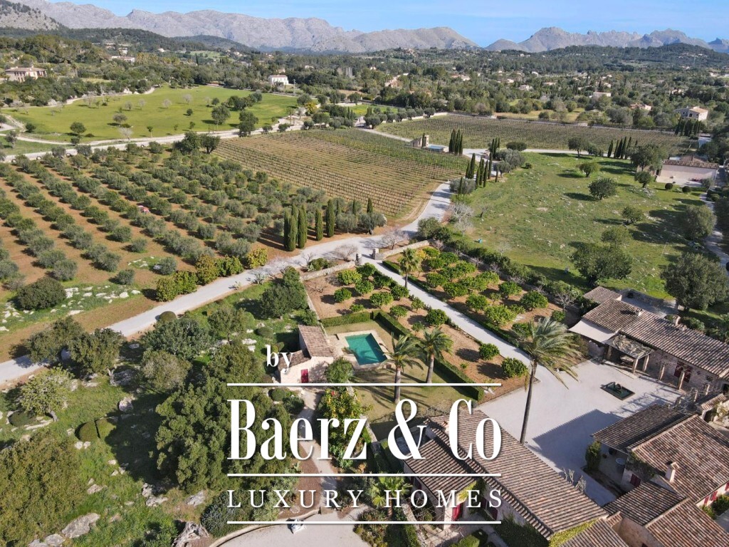 Estate for sale in Pollença presents an extraordinary retreat across 172,483 m² of tranquil Majorcan countryside, offering complete privacy and sweeping mountain views. The property’s main living area unfolds over 1,307 m², encompassing three independent bungalows joined by porches, terraces, and landscaped gardens. These guest houses, constructed approximately two decades ago, are meticulously maintained and connected by inviting outdoor spaces.