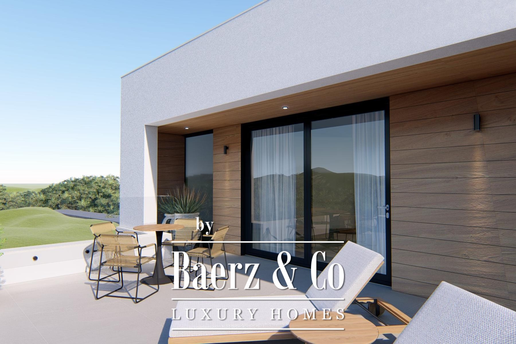 Modern villa with sea view Primošten is an architectural statement of restrained luxury and thoughtful living. With a living area of 314 m² set across two floors, this newly built residence rests on a generous 898 m² plot, balancing openness and privacy. On the ground floor, an expansive living space with kitchen and dining area flows onto a covered terrace with barbecue, providing seamless indoor-outdoor connection. The ground floor also offers a bedroom with private bathroom, guest toilet, and a storage area. Outdoors, a heated swimming pool anchors the garden, complemented by an auxiliary building with sauna and covered terrace, inviting calm and relaxation.