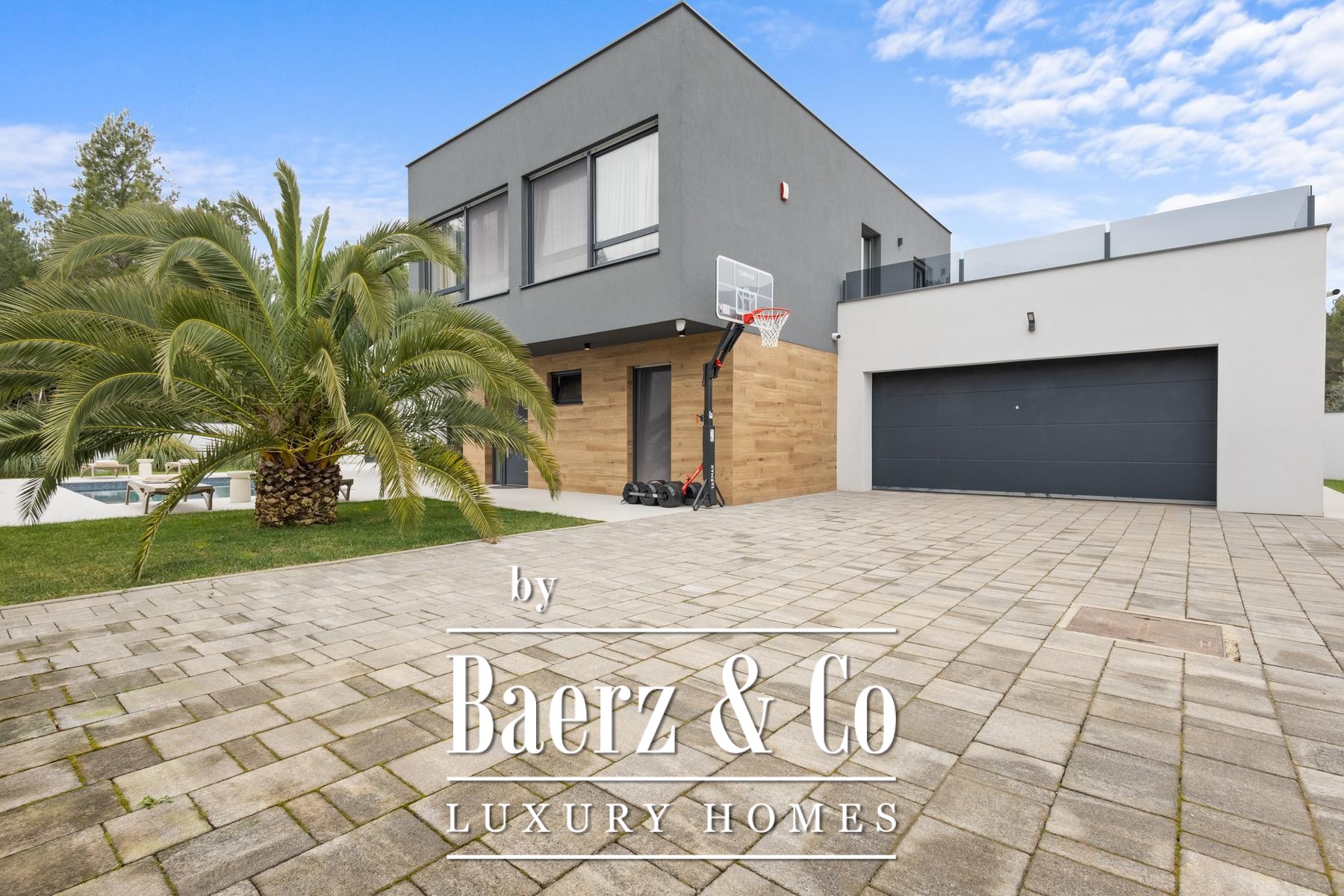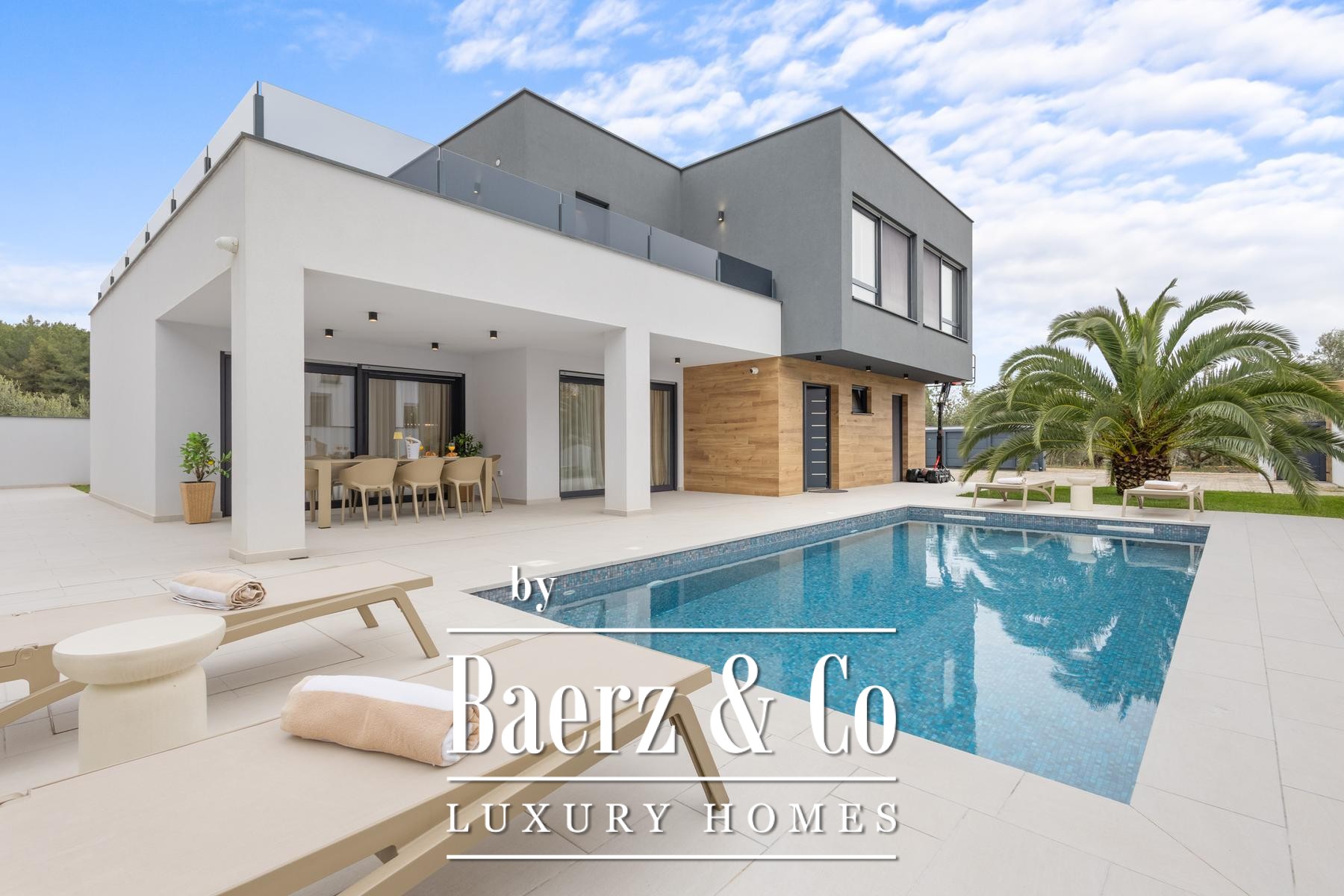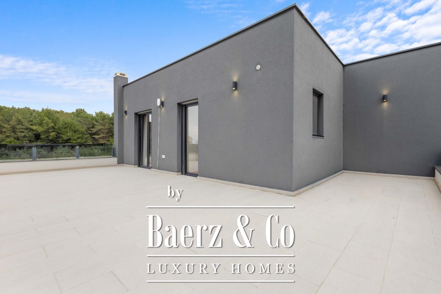 Modern villa Pula defines a new standard of peaceful Mediterranean living. Surrounded by greenery in the quiet Veli Vrh enclave of Pula, this property rests on a 733 m² plot, offering 273 m² of meticulously considered interior space. Designed in 2021, the villa’s composition balances functionality with a purposeful sense of luxury and aesthetic clarity.