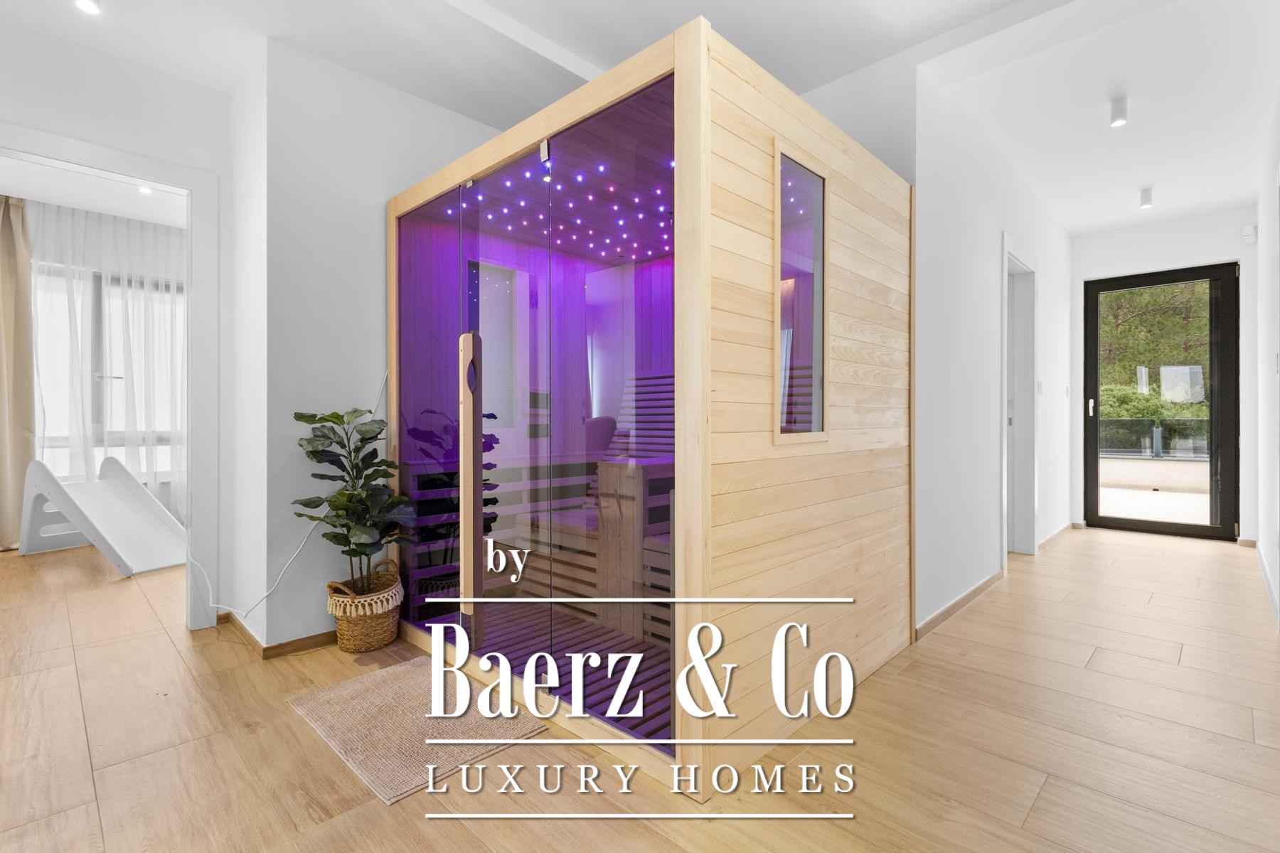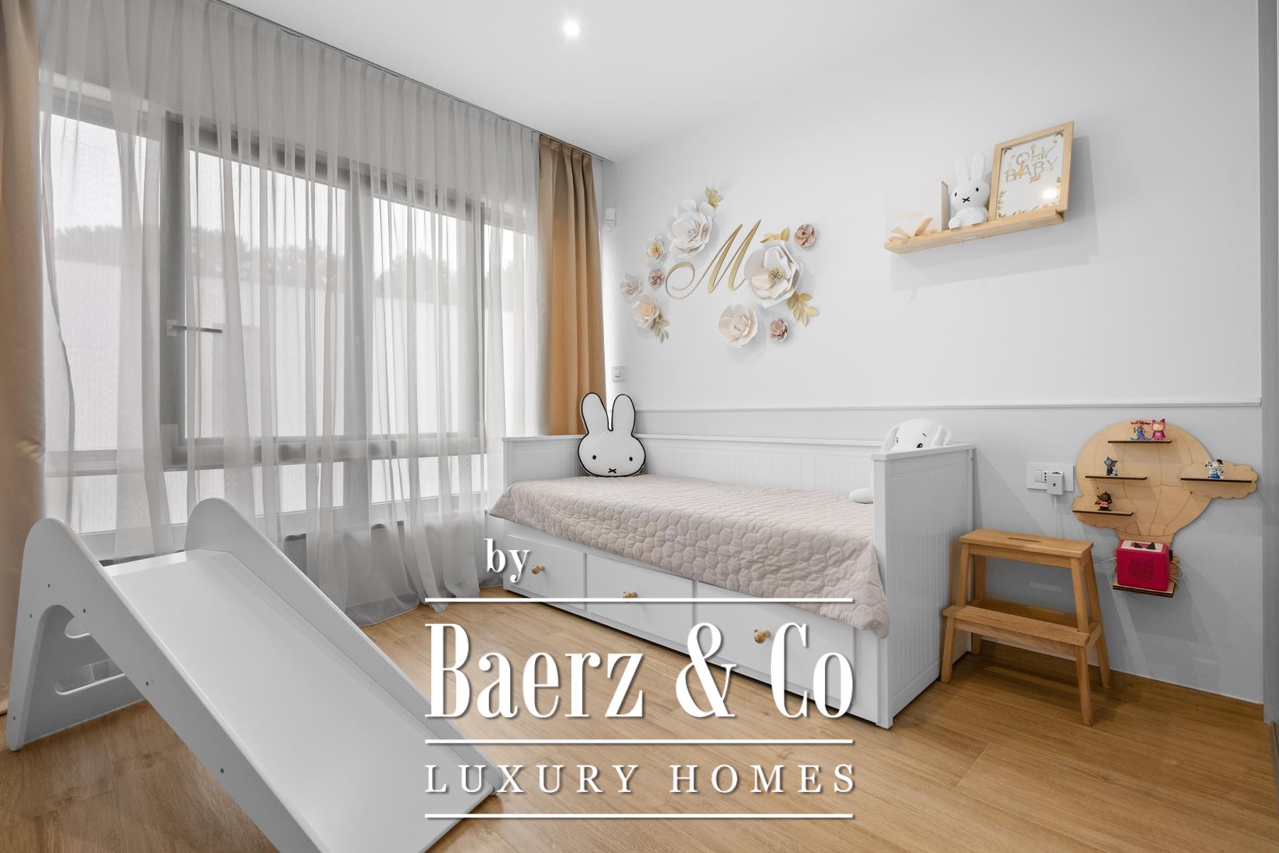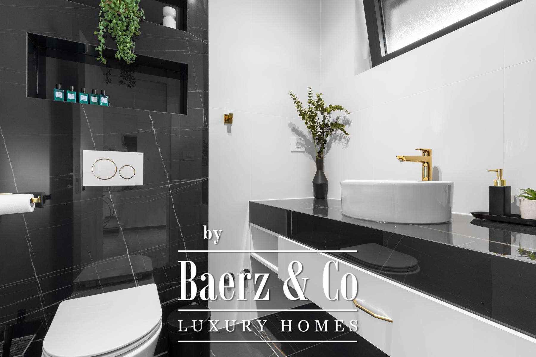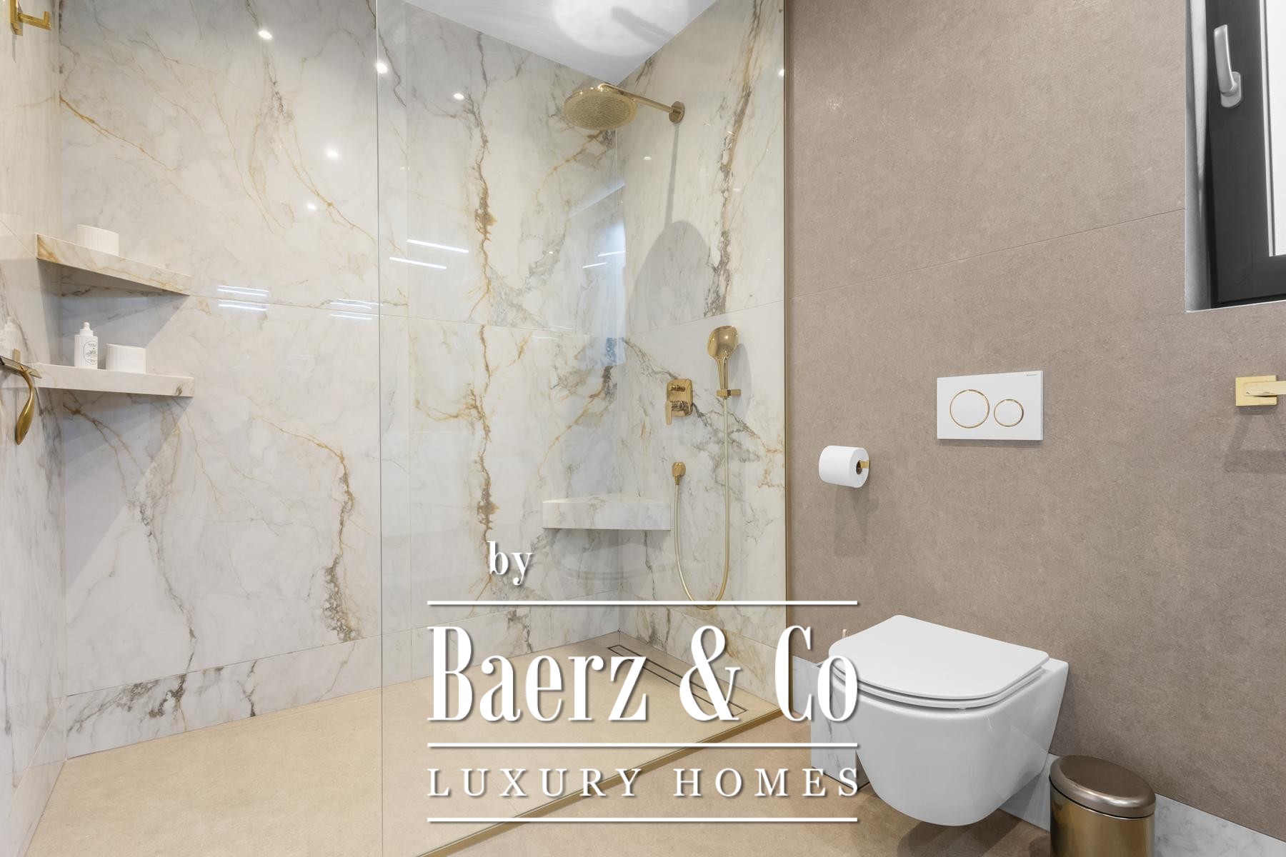 Daily rhythms unfold around an open plan living area of 48 m², where the lines between kitchen, dining, and lounge spaces dissolve into a seamless whole. Floor-to-ceiling glass opens onto a covered terrace of 23 m², allowing light to permeate and drawing the outside in. Four bedrooms and four bathrooms provide flexibility, the upper level anchored by a principal suite with walk-in wardrobe and dedicated children’s rooms. Leisure is elevated by a 30 m² gym and sauna, as well as two secluded roof terraces, each offering privacy within the urban landscape.