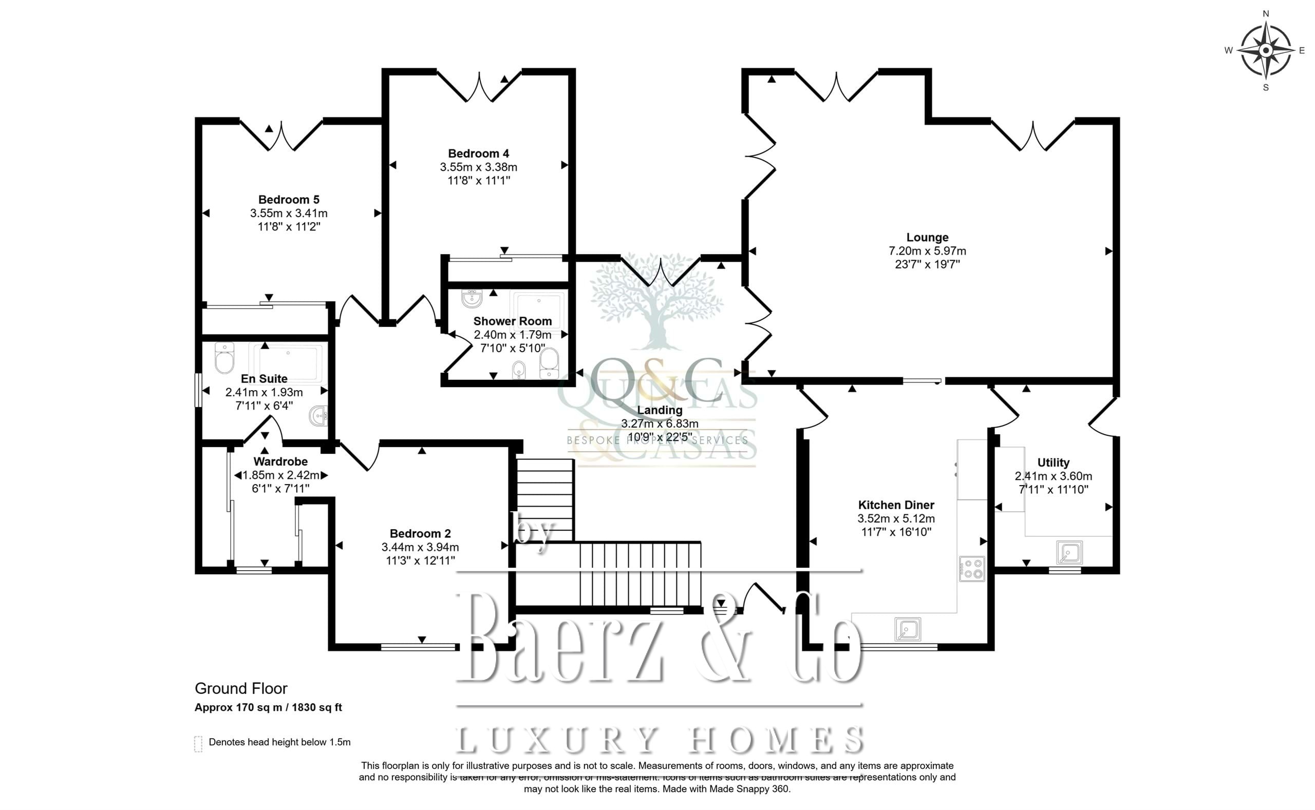 Five double bedrooms extend across the property, including three en-suites, one with a walk-in wardrobe. The primary living spaces engage directly with sunlit terraces, lush gardens, and a private heated swimming pool. An expansive open-plan living and dining area merges with a fully fitted modern kitchen and a spacious utility room, providing direct sightlines to the garden and pool. Ground-floor bedrooms offer fitted wardrobes, with two extending onto the main terrace and a third enjoying en-suite convenience and a dressing space.
