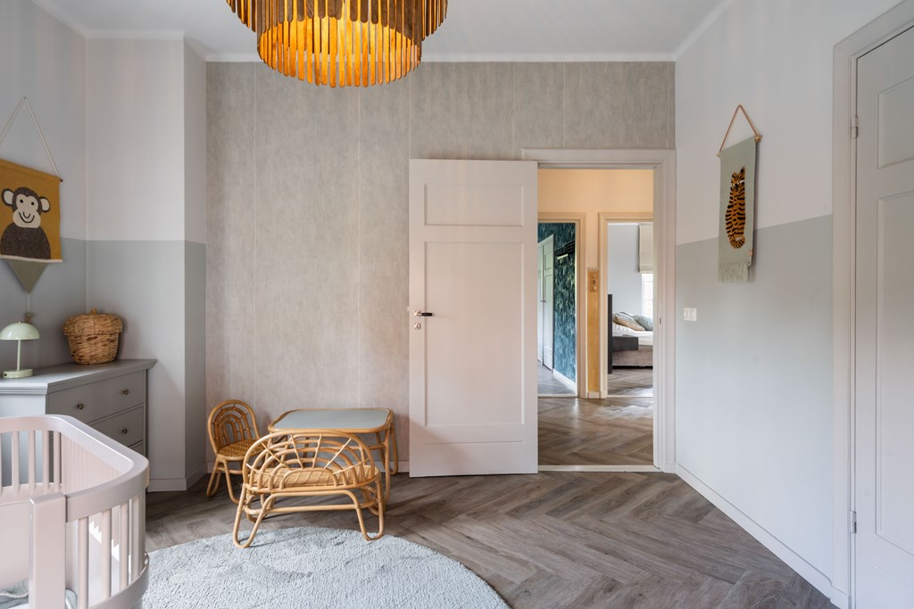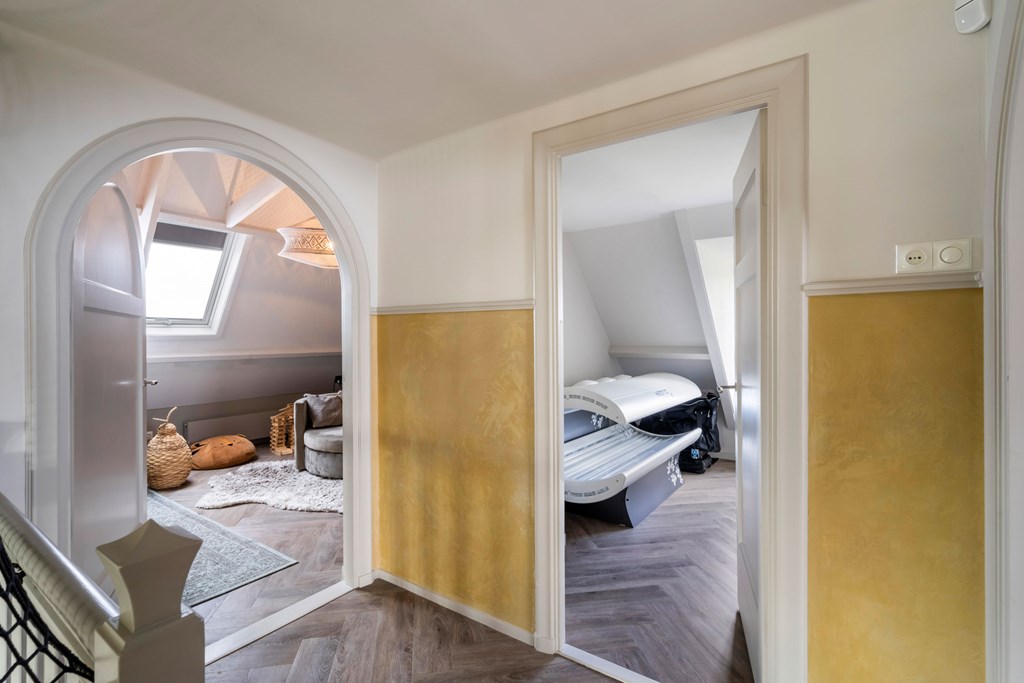 On the first floor there are four generous bedrooms. Each room is beautifully finished and highly versatile: whether you need extra bedrooms, a home office, hobby room, or fitness space, these rooms can be arranged to suit. The finely finished bathroom on this floor features a luxurious freestanding tub, a serene spot to unwind and enjoy a moment to yourself.