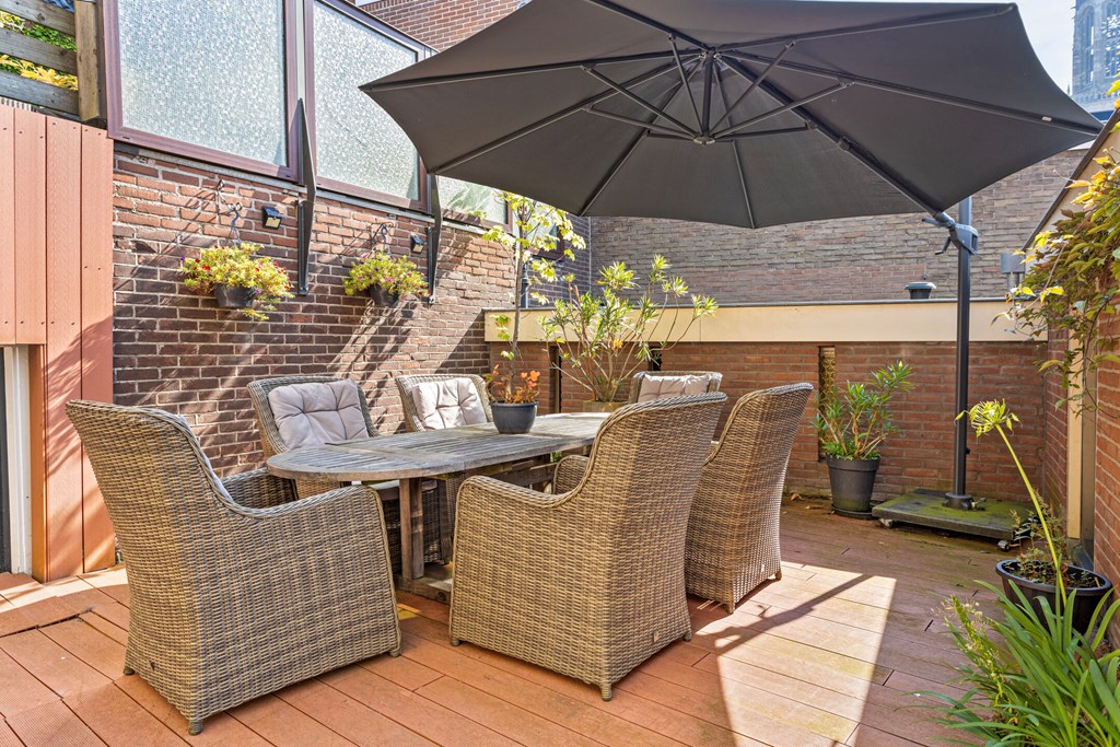 The sunny city garden, ideally south-facing, offers ample opportunities to enjoy long summer days. Thanks to its favorable orientation, you benefit from sunlight throughout the day, making it a delightful place to relax, dine, or spend time with family and friends. The garden is largely tiled, which not only creates a modern, sleek look but also keeps maintenance to a minimum—so you can enjoy your outdoor space year-round with little effort. The garden features an outdoor fireplace and a BBQ.