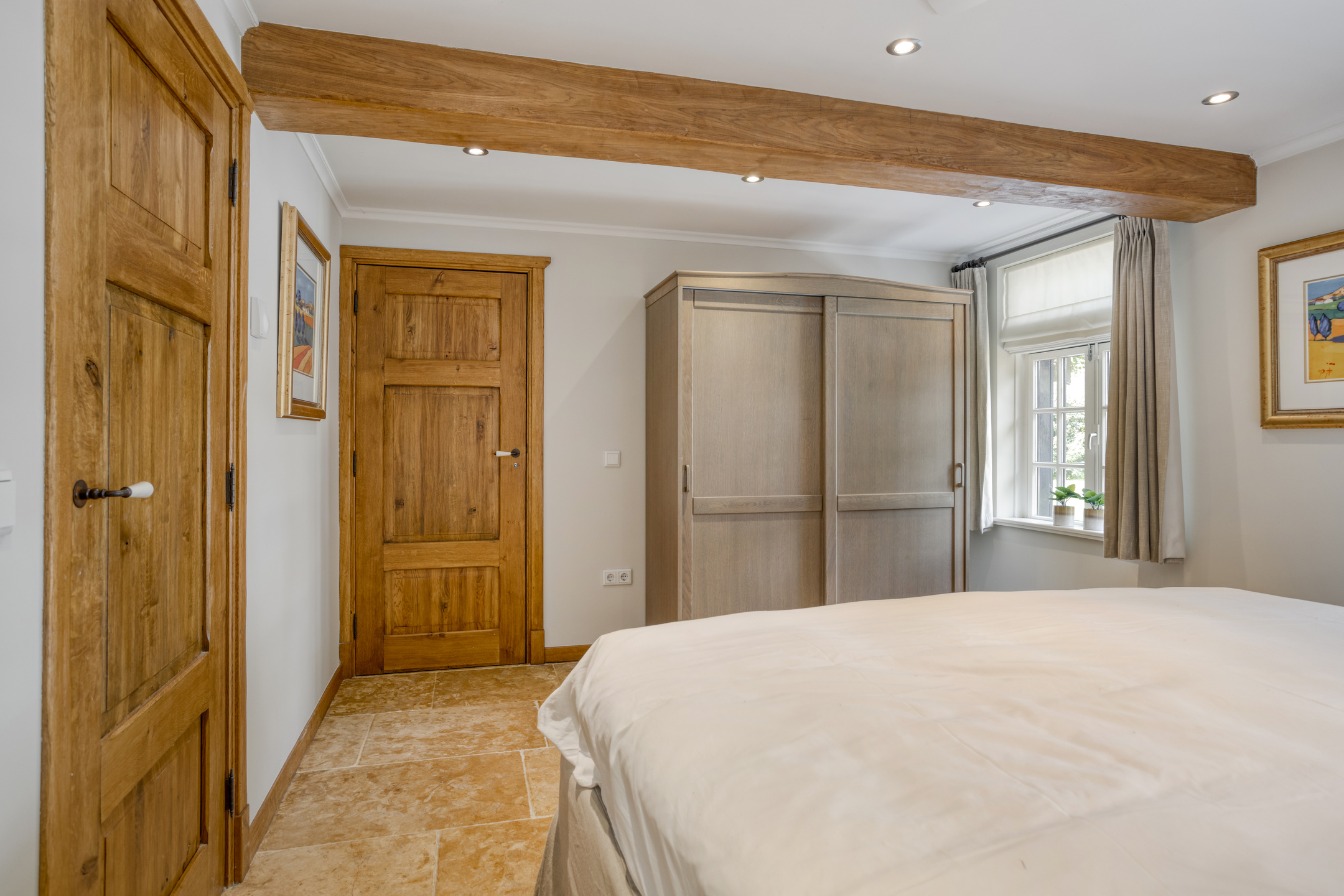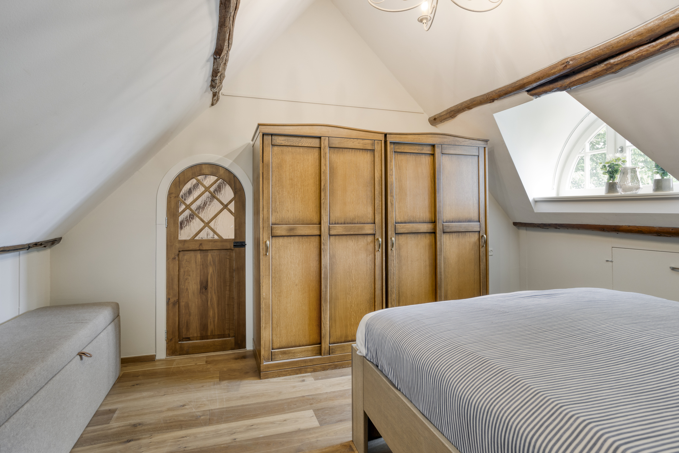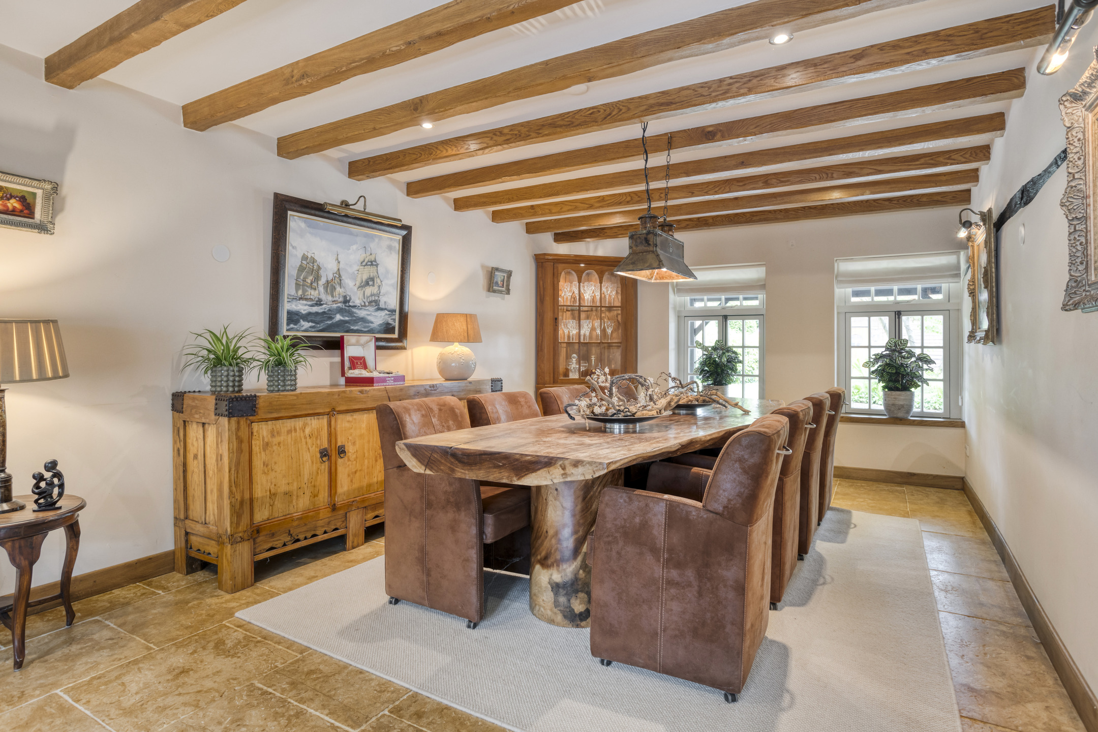 Farmhouse Riethoven offers a sense of seclusion and legacy on a peaceful street at the edge of Riethoven, Netherlands. This fully renovated residence occupies a magnificent 6,755 m² plot, with 484 m² of living space balancing restored character and contemporary comfort, including a detached guest house and a spacious outbuilding. The farmhouse Riethoven is enhanced by a thatched roof and thoughtful details throughout, from the marble-floored entrance and carved hardwood staircases to the elegant beamwork and expansive, light-filled interiors.
