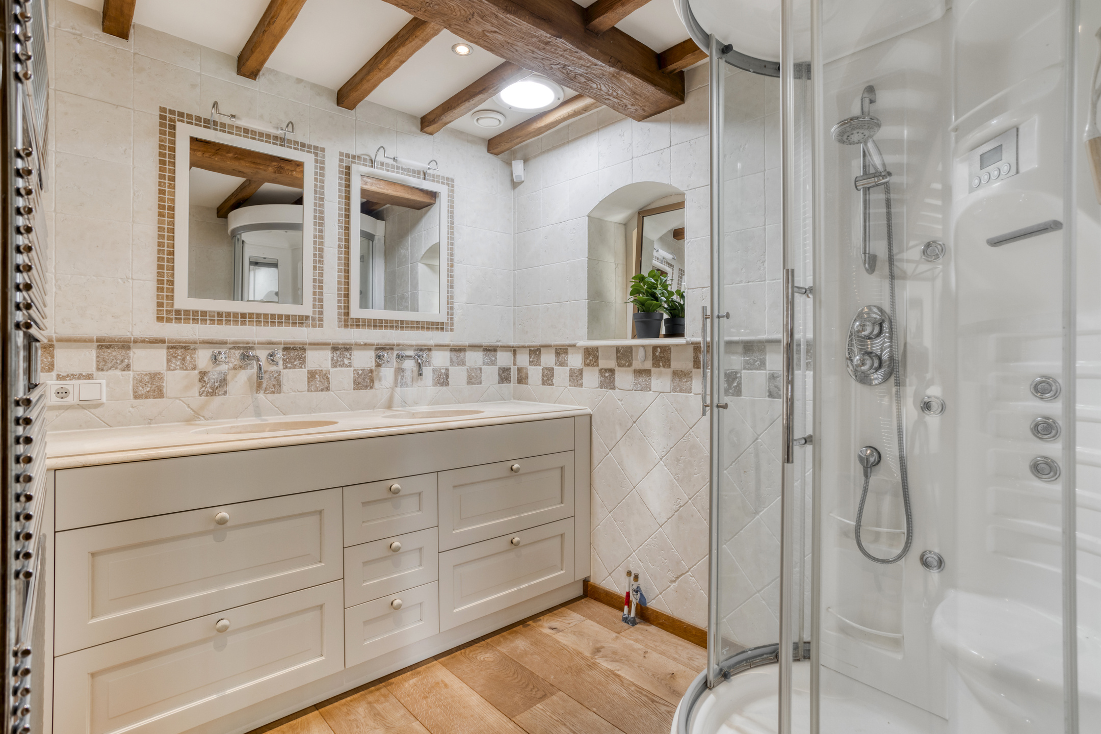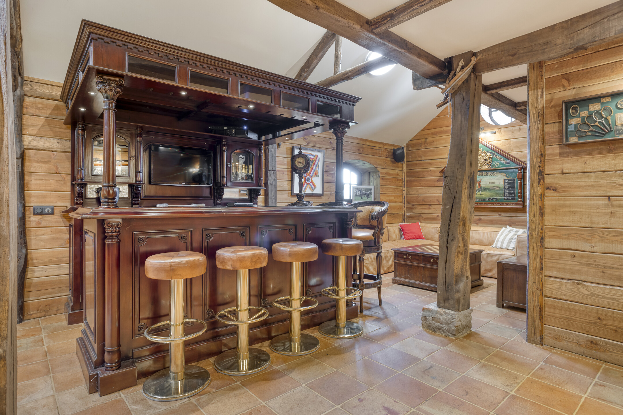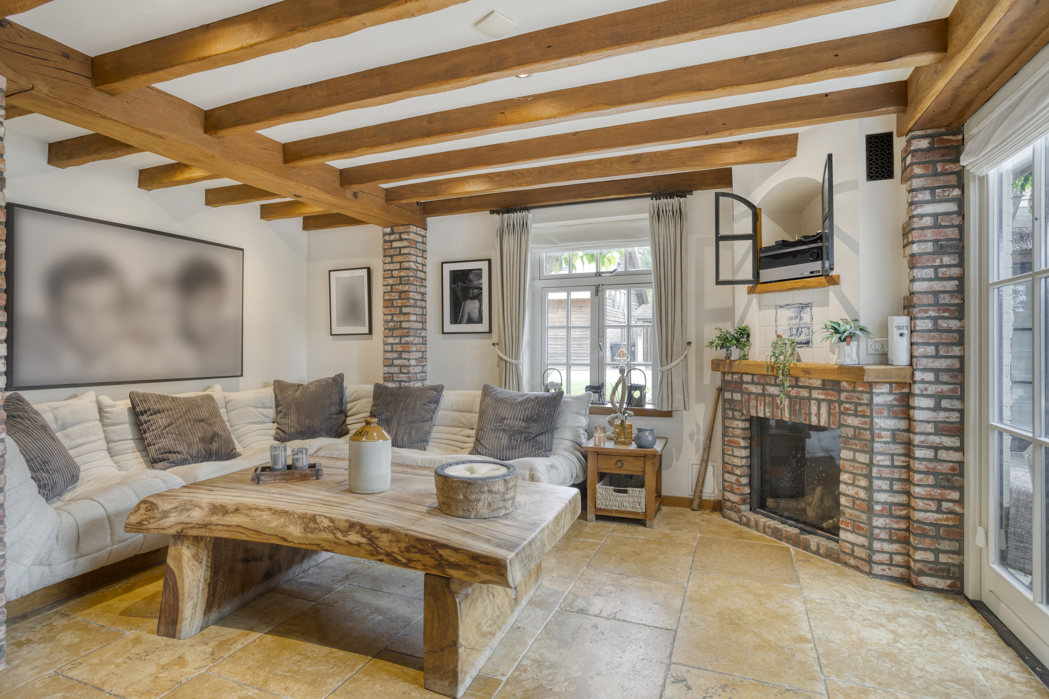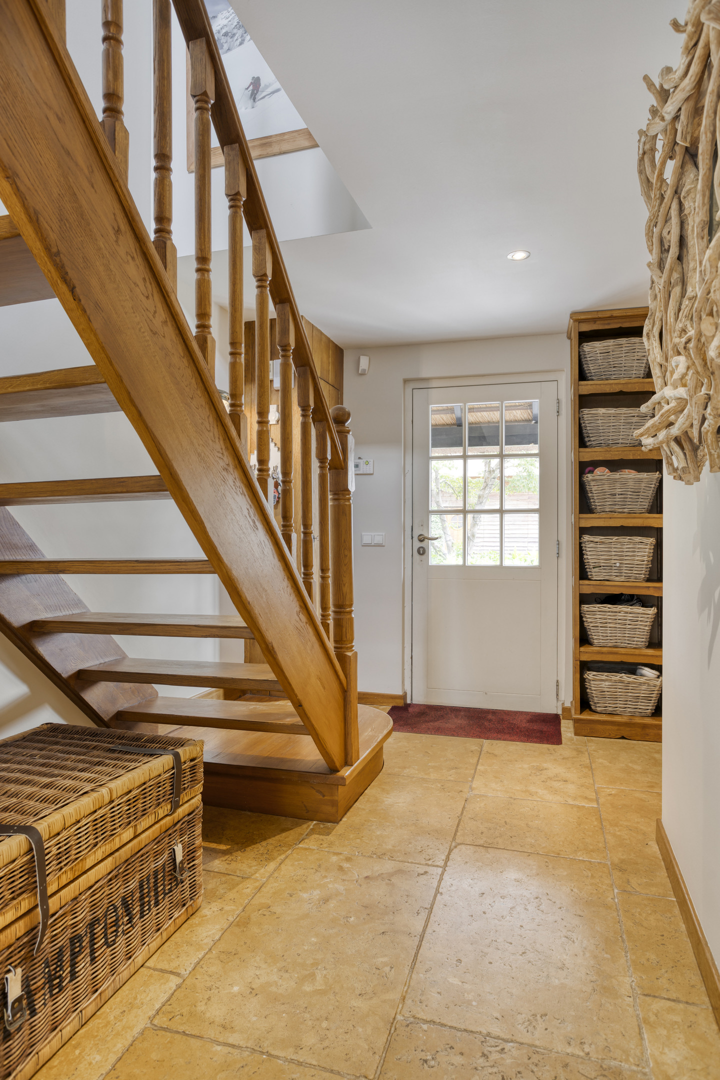 Farmhouse Riethoven offers a sense of seclusion and legacy on a peaceful street at the edge of Riethoven, Netherlands. This fully renovated residence occupies a magnificent 6,755 m² plot, with 484 m² of living space balancing restored character and contemporary comfort, including a detached guest house and a spacious outbuilding. The farmhouse Riethoven is enhanced by a thatched roof and thoughtful details throughout, from the marble-floored entrance and carved hardwood staircases to the elegant beamwork and expansive, light-filled interiors.
