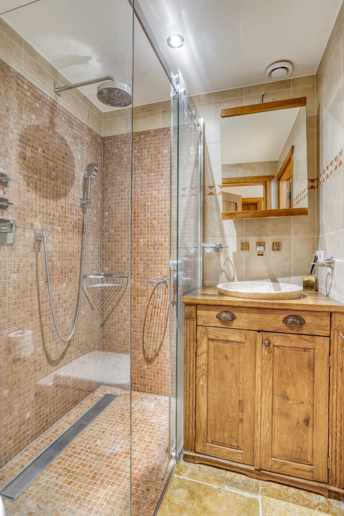 The main house is composed of a welcoming living room with a wood fireplace, a refined dining space, a large kitchen with marble surfaces and a prominent island, a wine cellar, four tranquil bedrooms, and two marble-clad bathrooms. Air conditioning, partial underfloor heating, and an alarm system elevate comfort and security. The guest house, with thatched roof and its own terrace, provides two additional bedrooms and two bathrooms, offering autonomy and dignity for visitors or extended family.
