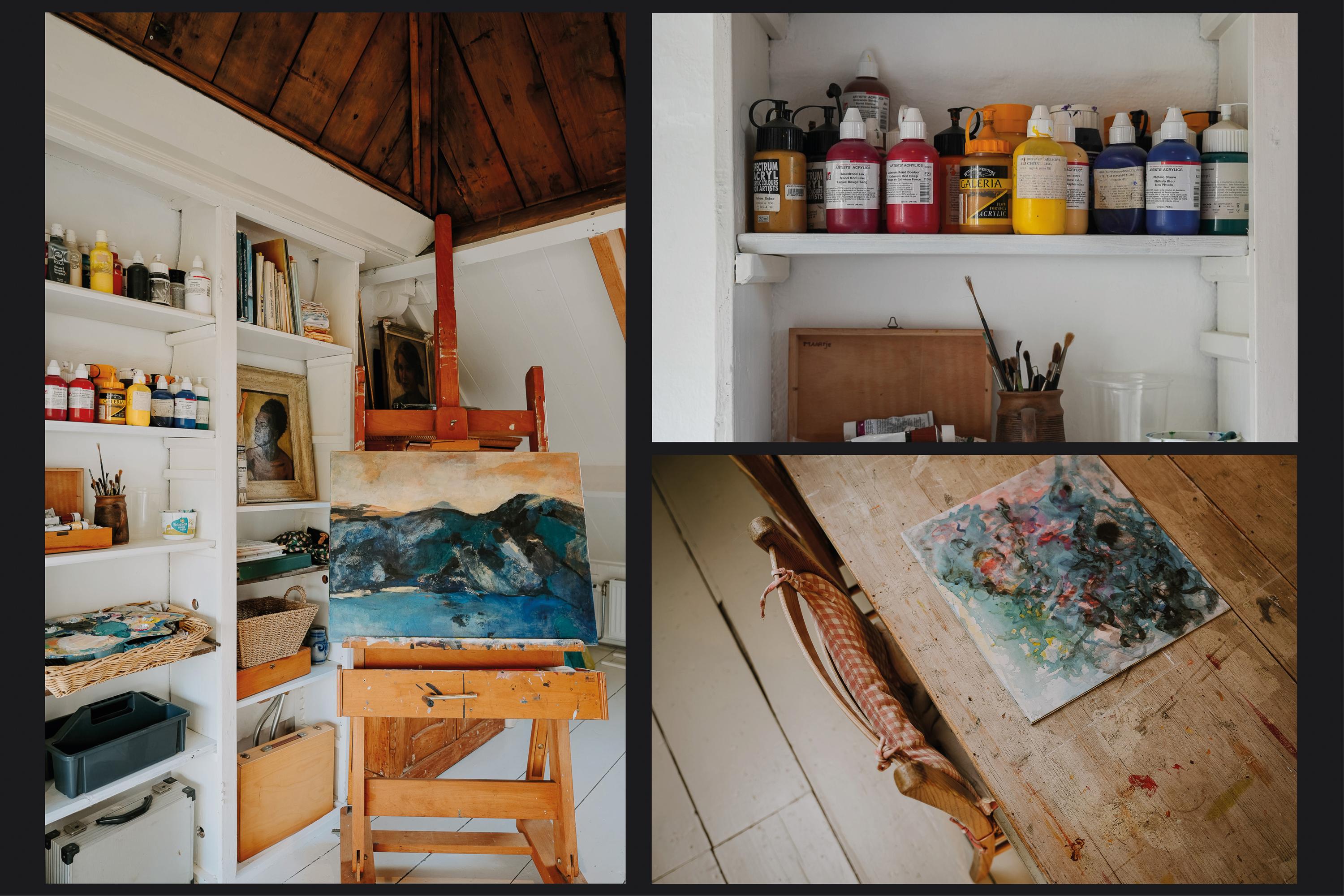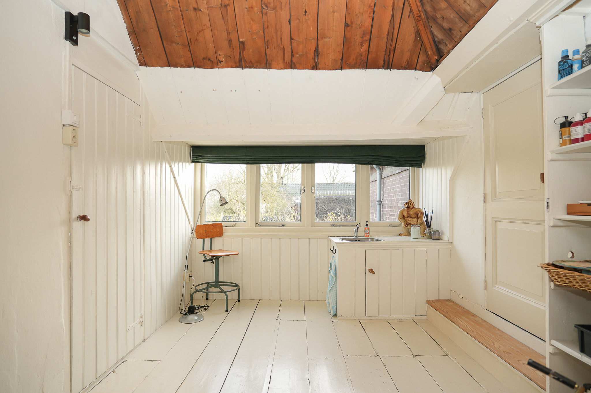 The villa comprises five bedrooms and one bathroom, with rooms thoughtfully arranged for work, rest, or creativity. Elements like an historic washstand with marble and refined cabinetry subtly express the home's legacy, while spaces such as the attic, studio, and a technical area support versatile private and professional uses. The outbuilding and generous, biodiverse garden offer privacy, seasonal color, and an ecosystem alive with birds and wildlife, reflecting the natural rhythm of the property. All amenities—including underfloor heating, mechanical ventilation, double glazing, and solar panels—quietly enhance daily comfort and sustainability.
