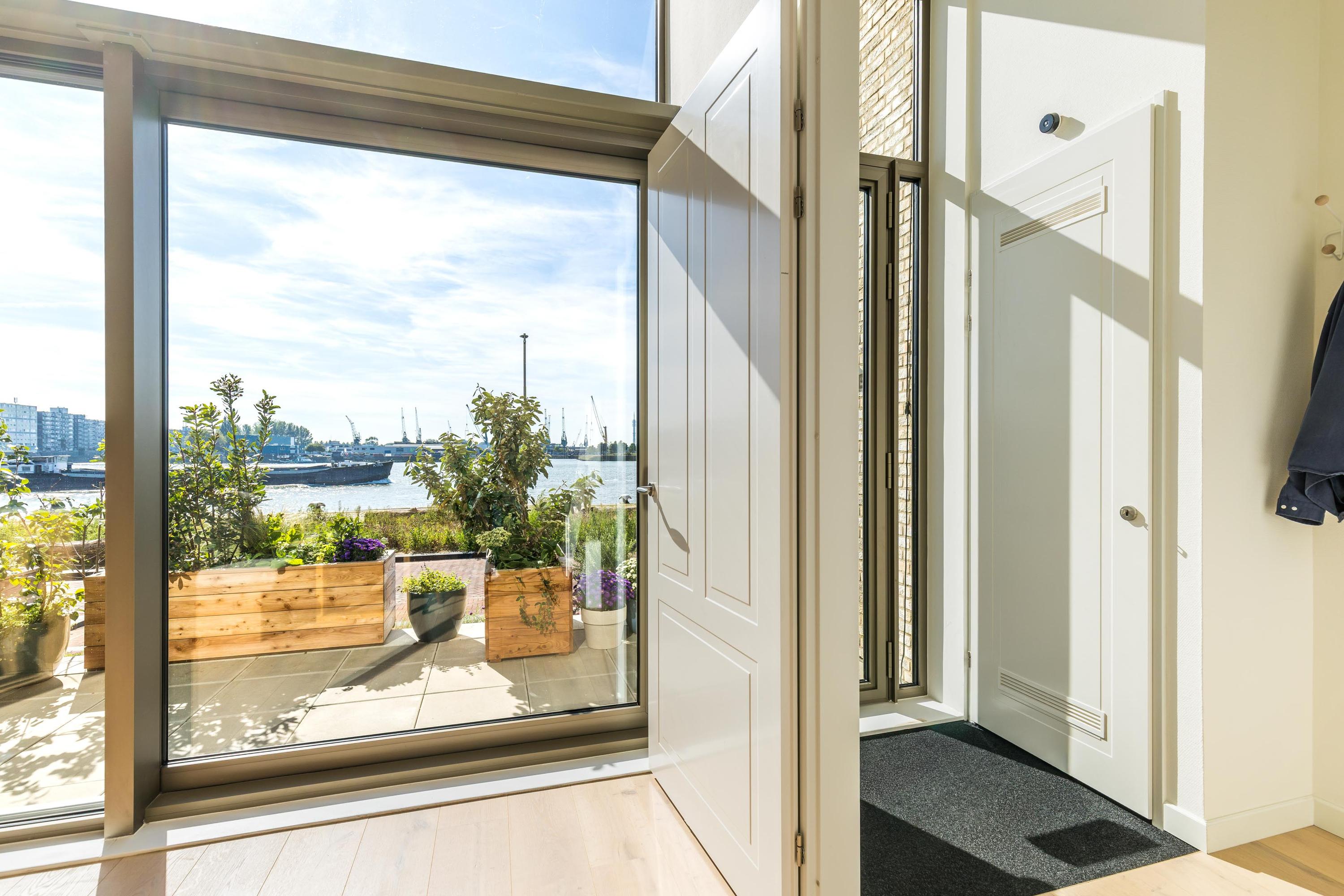 A living painting in your window every day: this spacious and stylishly finished apartment on the Lloydkade offers luxury, space, and panoramic views of the Maas River from sunrise to sunset.