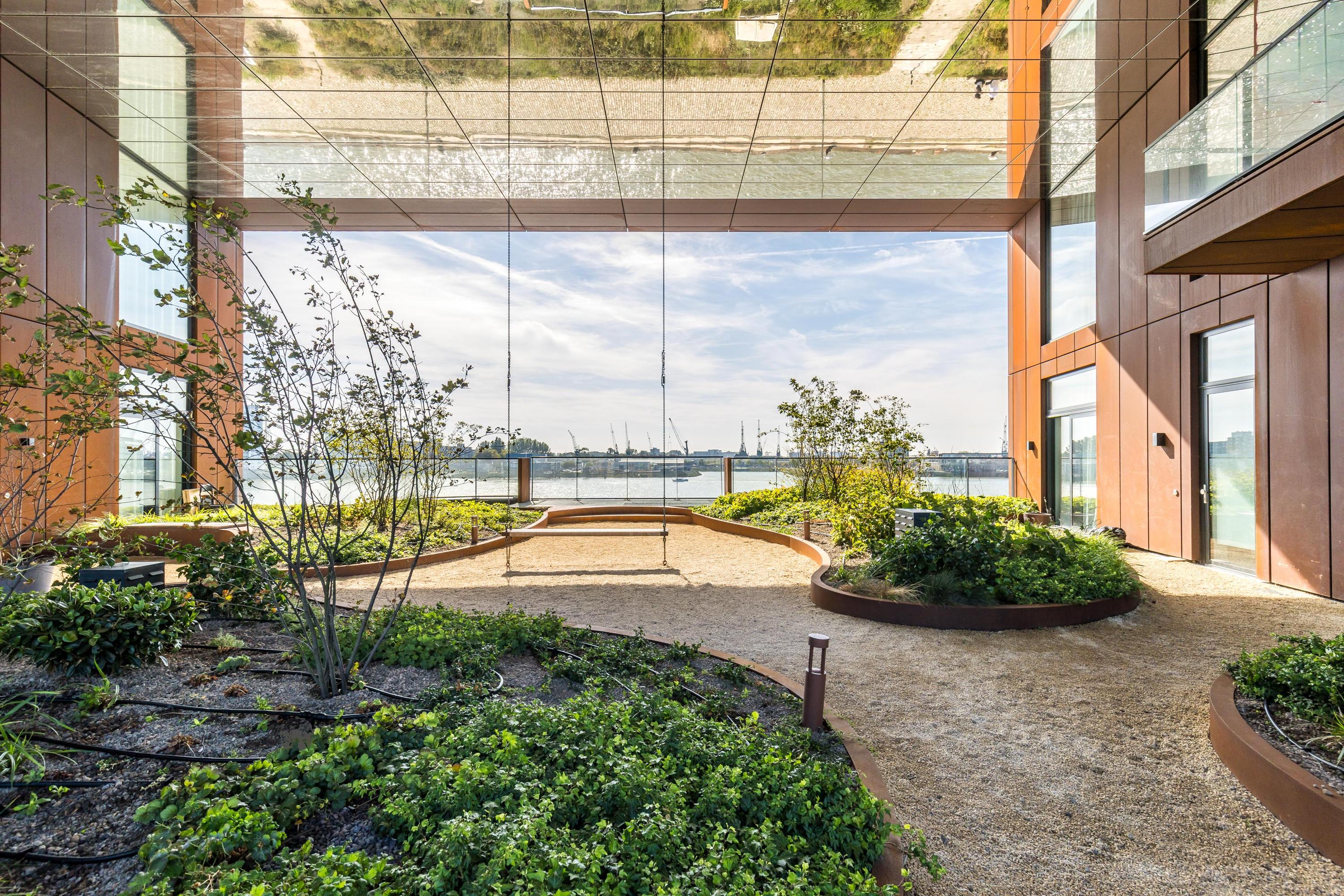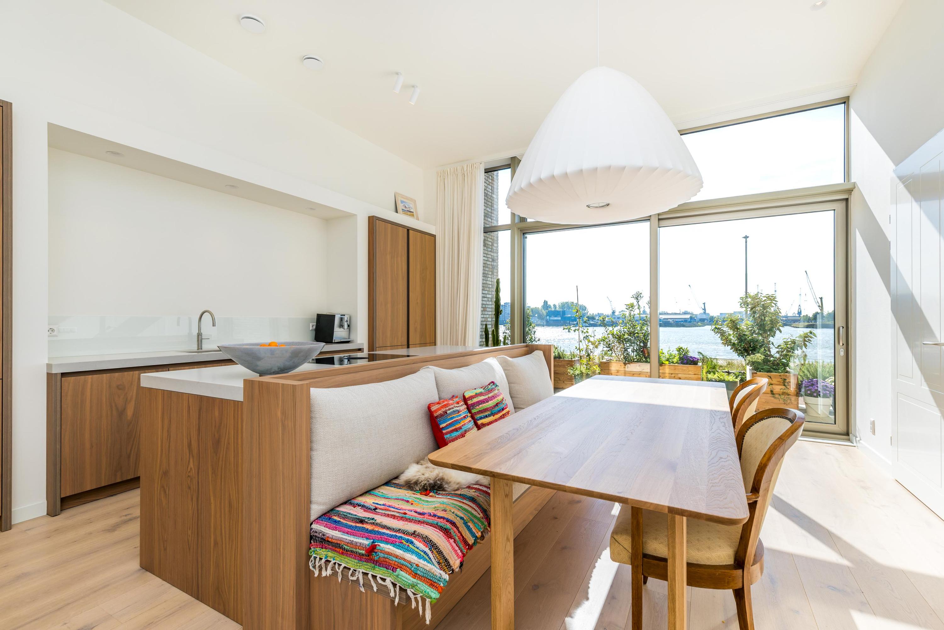 The first floor is designed as a living area and offers a generous living room with floor-to-ceiling windows, seamlessly integrating the waterfront view into your interior. All bedrooms and the living room overlook the Maas River. There are currently two bedrooms, but a third is easily possible.