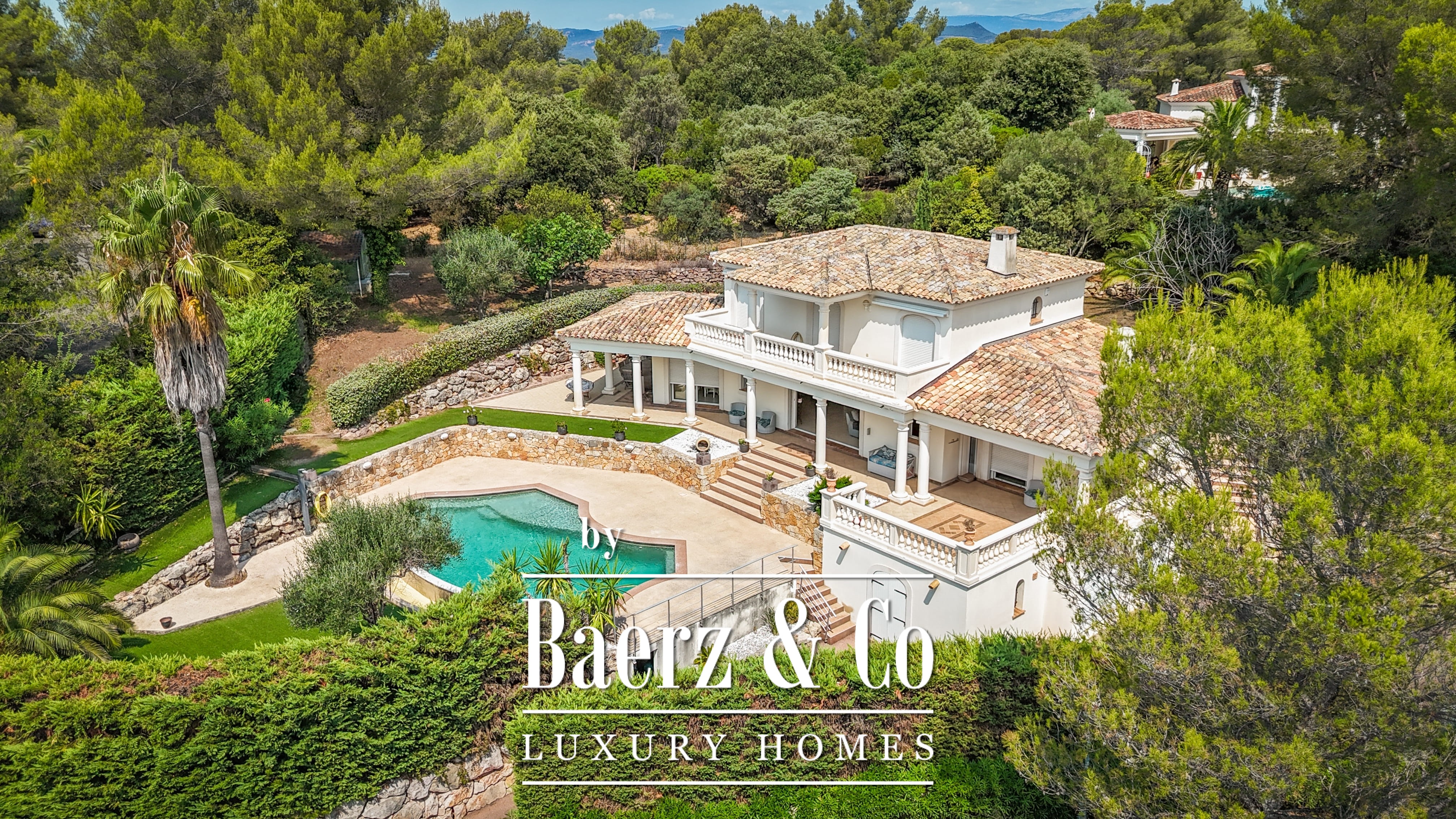 Villa Saint-Raphaël is offered for sale in one of the most desirable settings on the Côte d’Azur, set within a private, secure estate. This 205 m² residence is defined by its elevated position, optimal sunlight, and quiet residential atmosphere, a short distance from renowned golf courses.