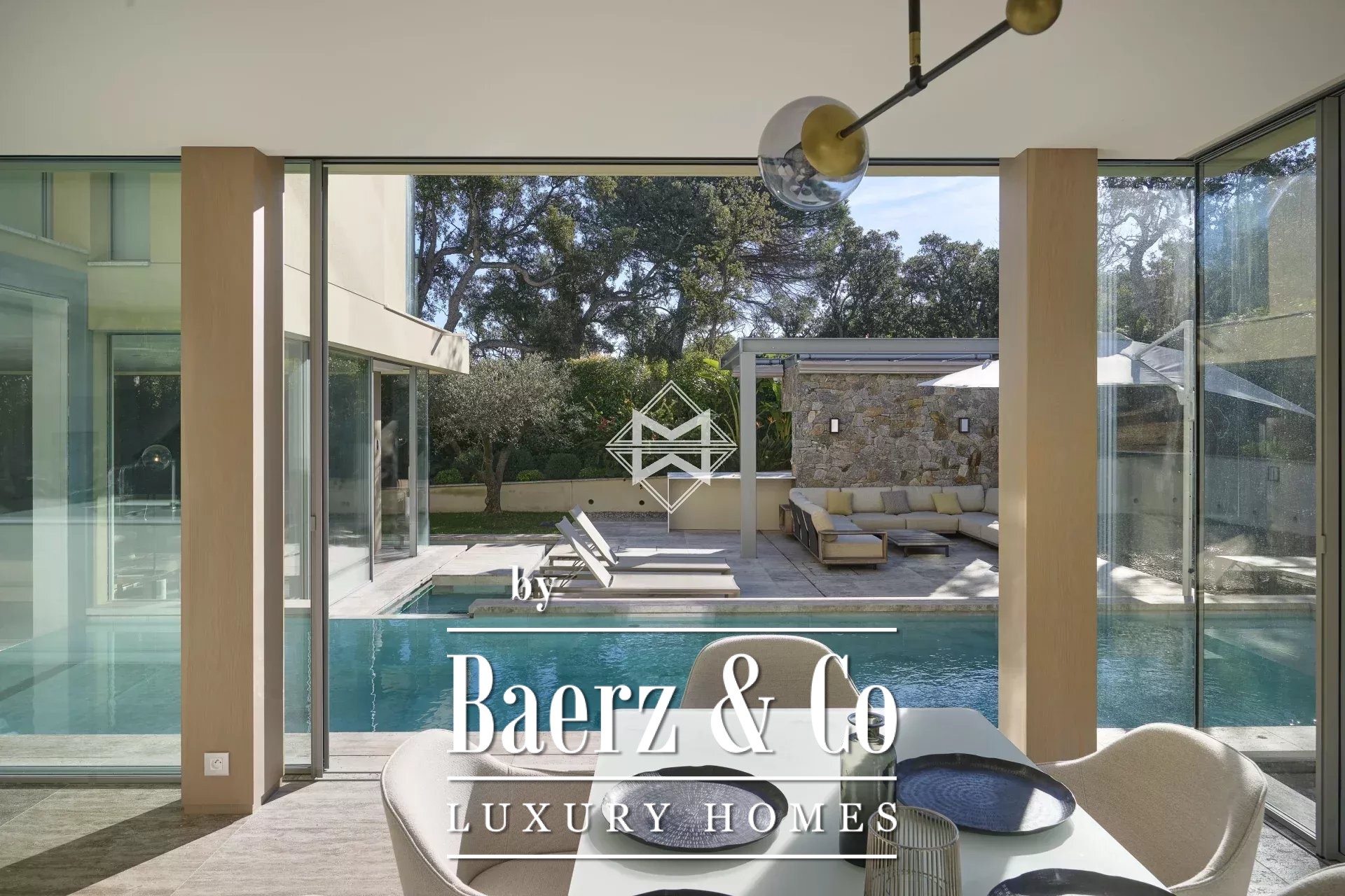 Villa Saint-Tropez sets a serene rhythm, offering 310 m² of refined living on a generous 1,225 m² plot. This villa in Saint-Tropez greets you with five bedrooms and five bathrooms, creating a poised family retreat where privacy and spaciousness prevail. The living and dining areas, illuminated by natural light, transition seamlessly onto expansive terraces. These outdoor spaces—dining area, lounge and pool—offer avenues for quiet relaxation and social gatherings alike, with views that reach toward the sea and surrounding greenery.