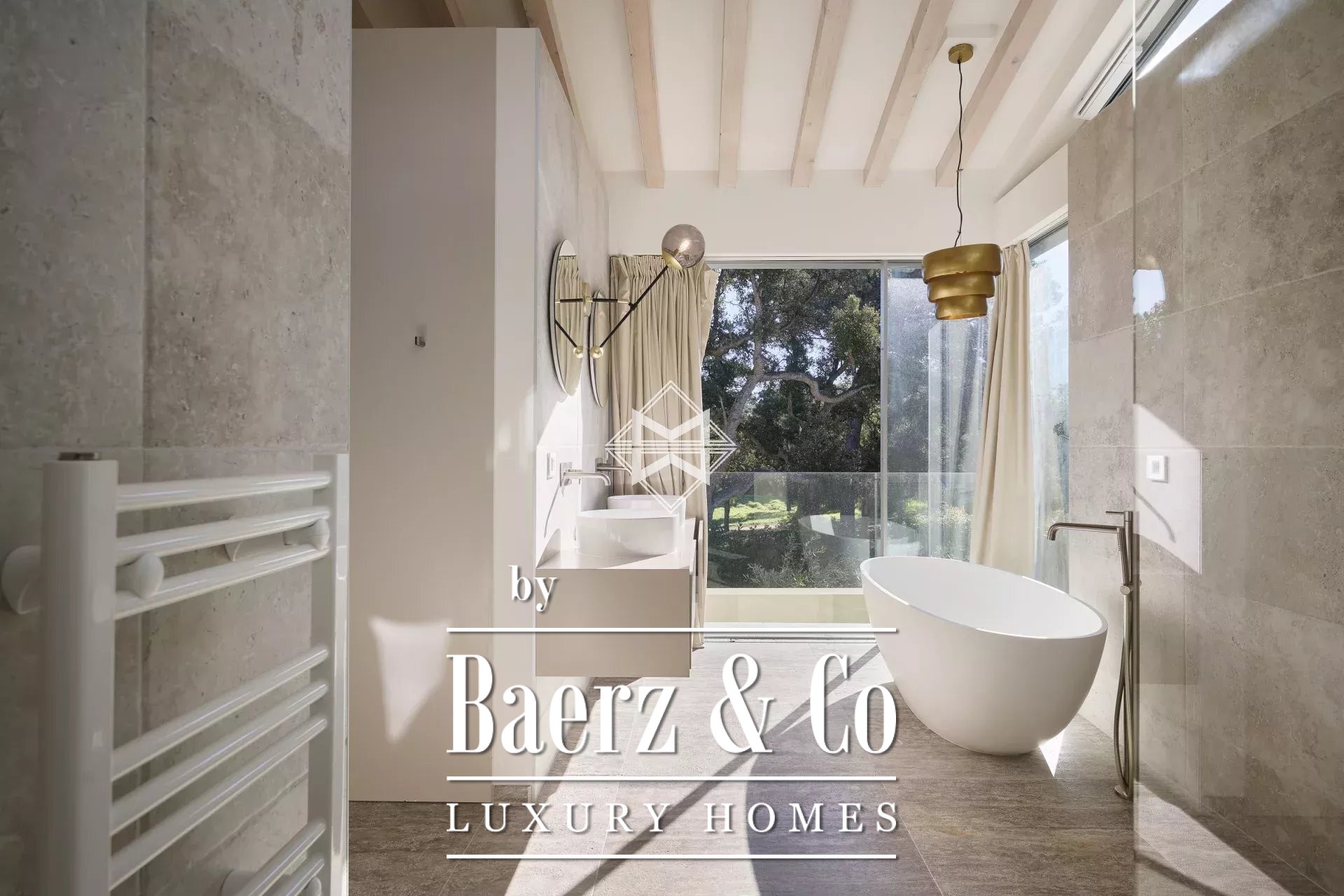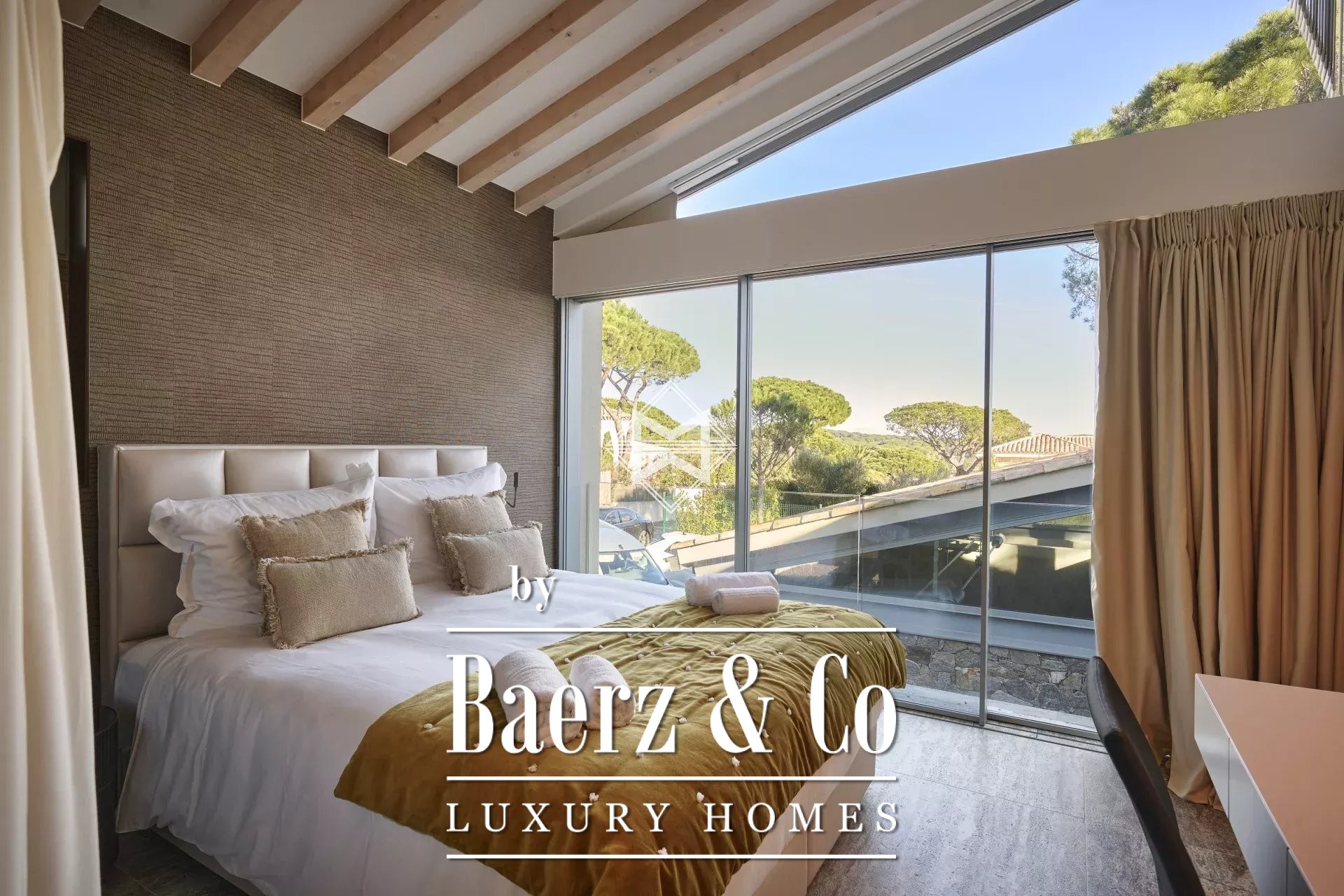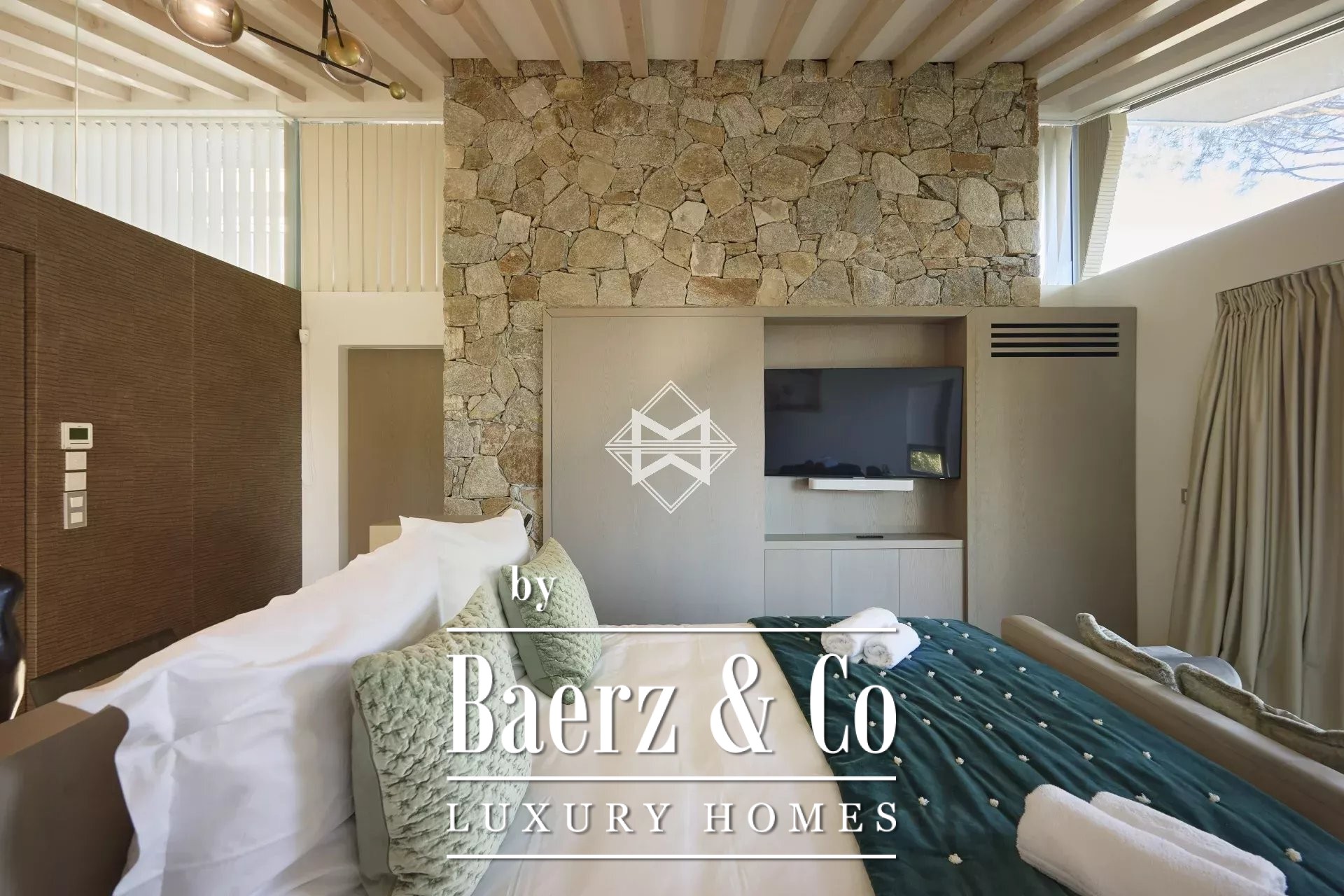 Details such as air-conditioning, radiator heating, double glazing, alarm system, safe and intercom ensure comfort and security. A garage and electric gate provide ease of access. This sea view villa for sale in Saint-Tropez achieves an interplay of function and elegance, shaping a lifestyle both tranquil and distinctly Mediterranean.