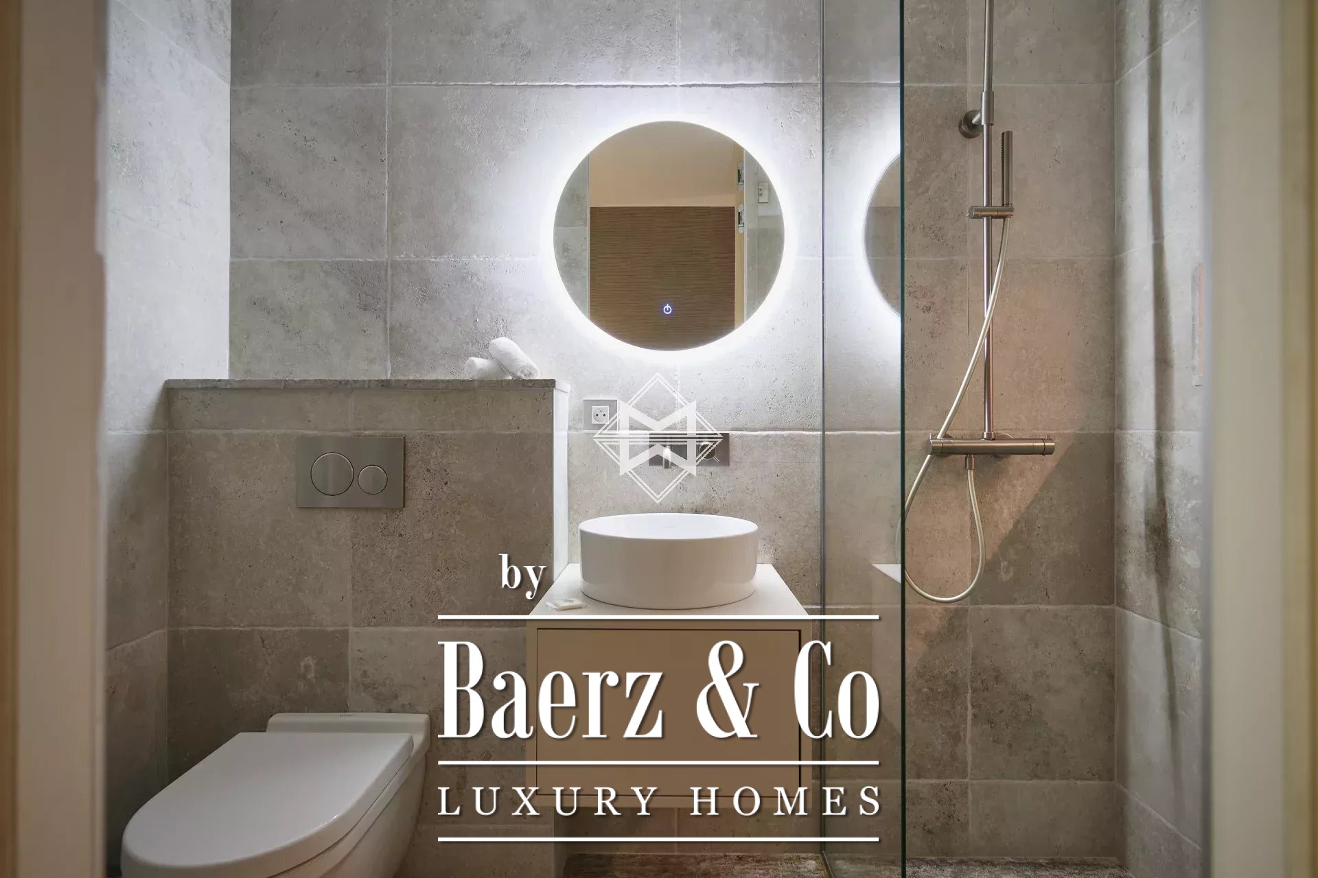 The kitchen is fully equipped for an elevated culinary experience, inviting dedicated preparation and conviviality. Wellness is at the core, with a fitness room, sauna and a dedicated TV projection area. The villa is layered across three levels, enabling a refined progression of everyday moments and entertaining.