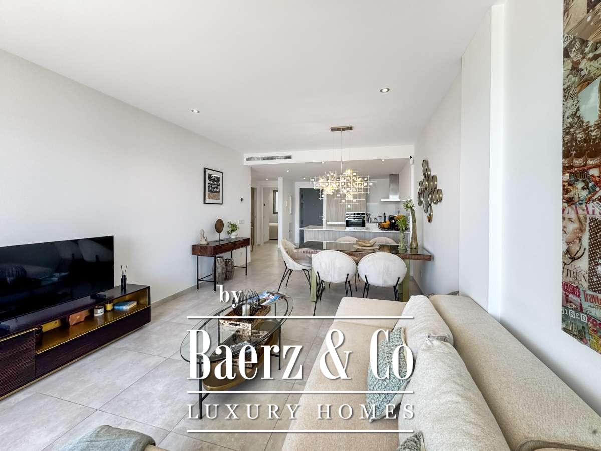 The main living area, open-plan and thoughtfully proportioned, unites kitchen, dining, and lounge with fluid transitions onto the terrace. Two bedrooms and two bathrooms provide calm, self-contained space for residents and guests alike. Furnished with contemporary pieces and finished to a modern standard, every element is considered and move-in ready.