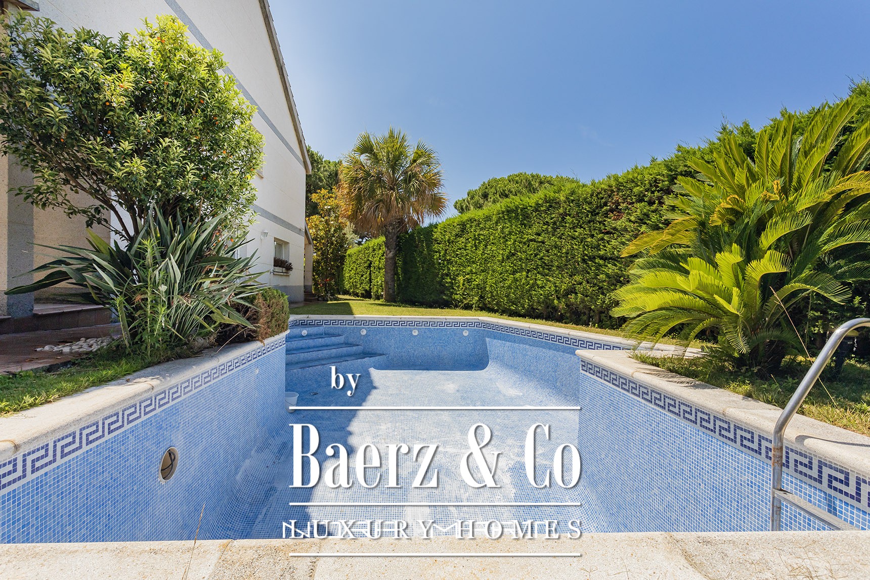 House Sant Andreu de Llavaneres stands quietly in the residential enclave of Can Sans, positioned near Joaquim Passi Park and just ten minutes on foot from the shoreline. This semi-detached residence, constructed in 1988, is introduced by a private garden of 293 m² and a swimming pool, offering a subtle rhythm of indoor and outdoor life.