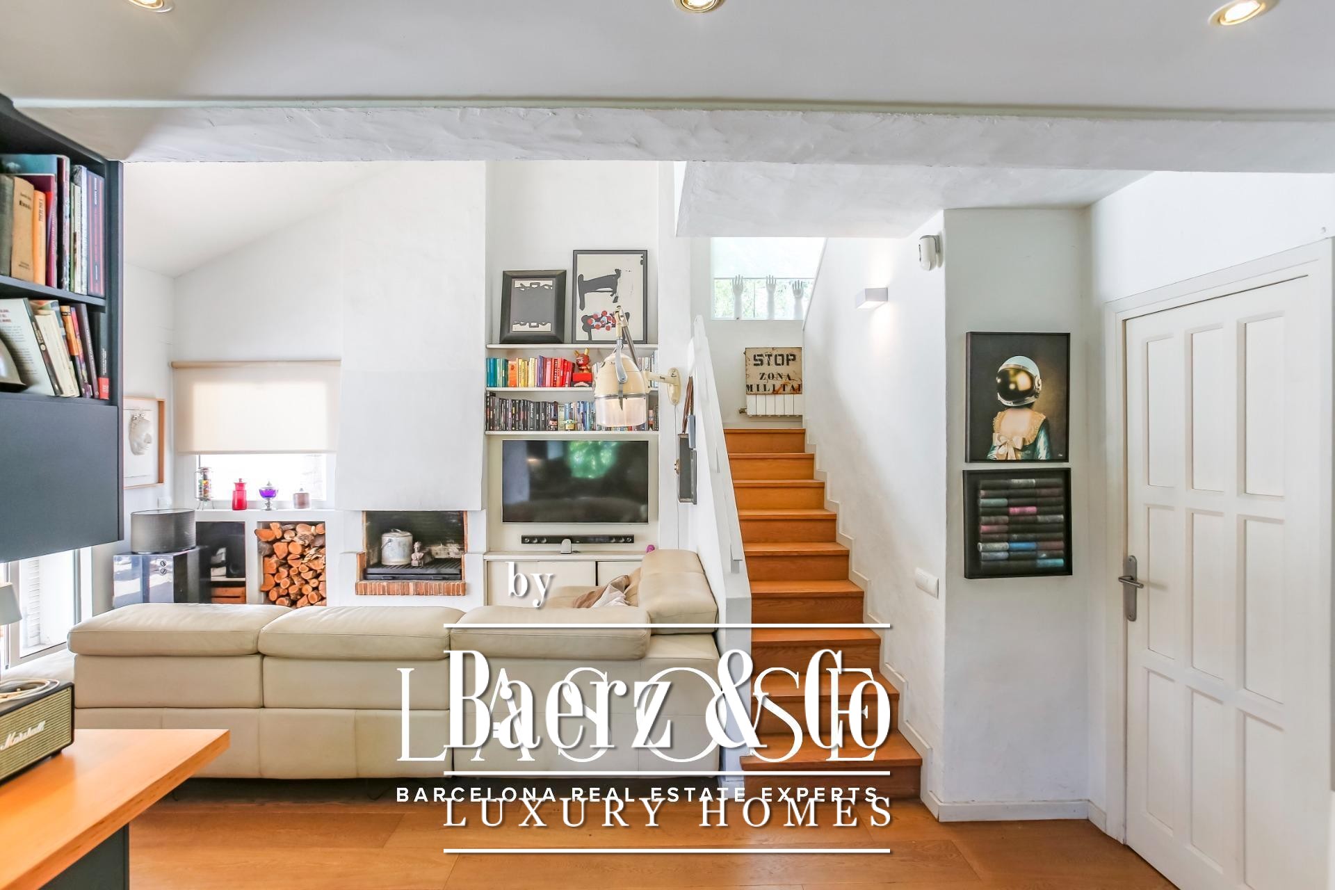 Beyond the landscape, interiors unfold in a harmonious rhythm. An elegant living area with fireplace opens to the garden, while a fully equipped kitchen with central workspace adjoins a private patio and parking. On the ground floor, a guest suite or study complements flexible living, while the upper level features three bright double bedrooms, each with garden views, enhanced by double-height ceilings. Throughout, refined finishes and neutral tones accentuate the architecture’s natural elegance.