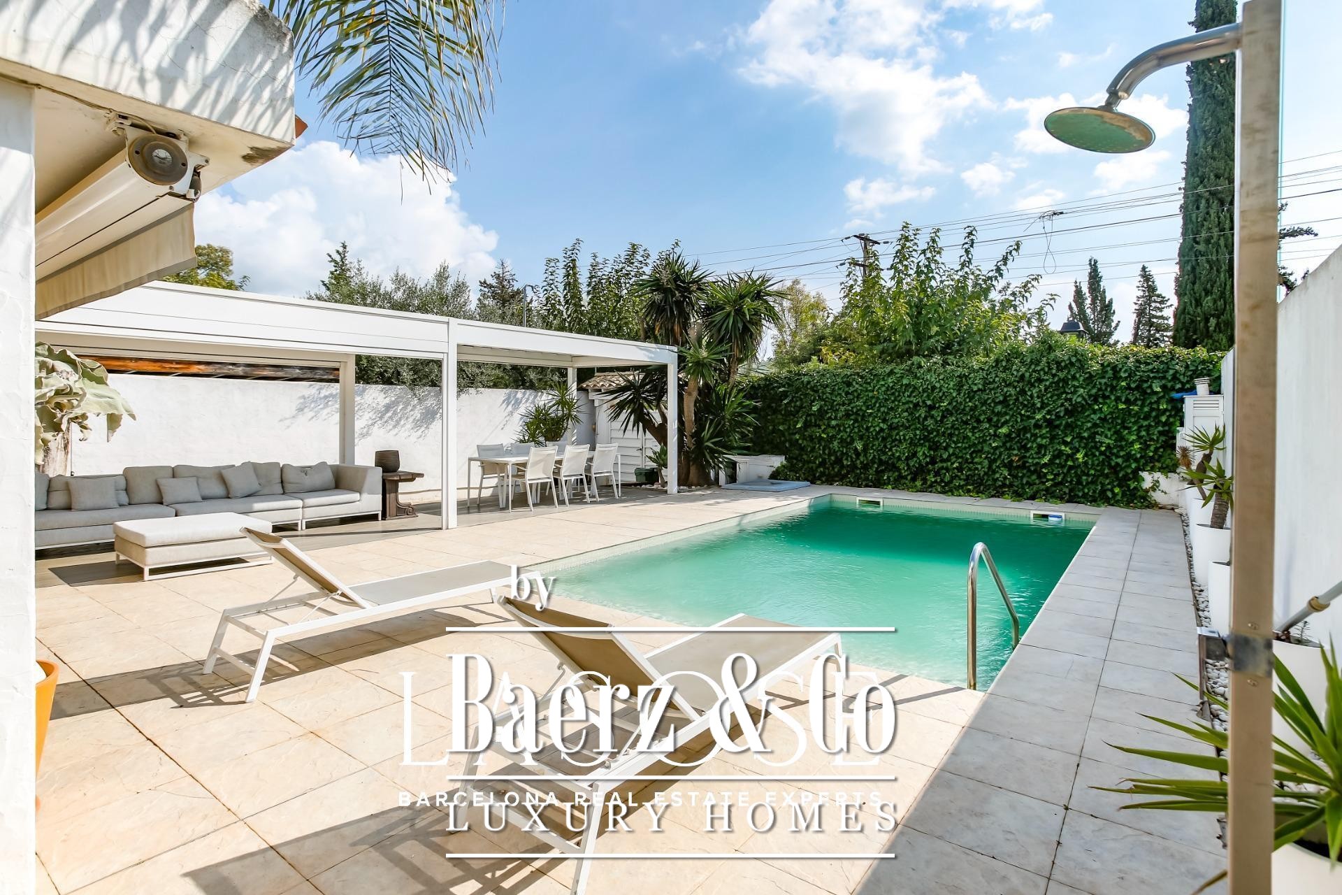 Detached house Sant Pere de Ribes offers an understated, Mediterranean aesthetic set within the exclusive enclave of Los Viñedos. The residence presents 155 m² of considered living space on a 355 m² plot, offering four bedrooms and two bathrooms, thoughtfully arranged for privacy and fluidity. Light flows through expansive sliding windows, connecting interior spaces with lush gardens, lounge terraces, and a private swimming pool—an invitation to daily calm and quiet gatherings alike.