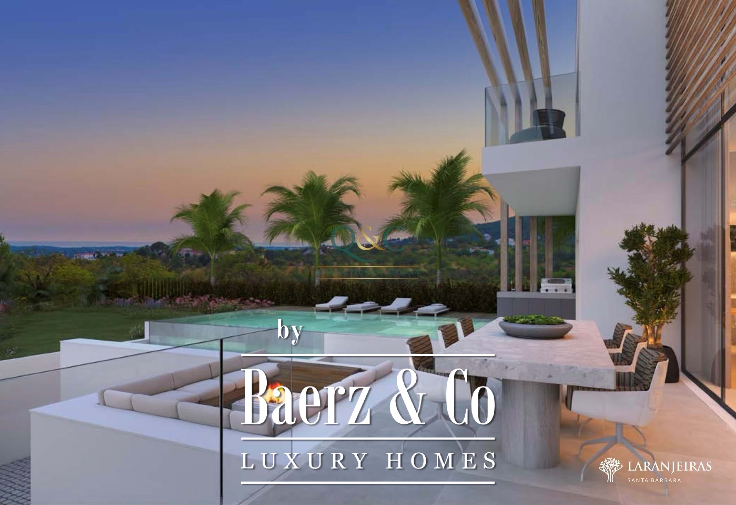 Laranjeiras a unique development of bespoke, architect designed detached villas that nestle quietly within a gated environment in the unspoilt hills above the quintessential Portuguese village of Santa Barbara de Nexe. This beautiful, well-kept village is an undiscovered hillside gem that boasts an historic white church complete with belltower, shady, tree-lined squares and a good sprinkling of amenities including bars, restaurants, shops and coffee houses. There is also a local market and a well-equipped garage. This stunning location offers unrivalled sea views and cool summer breezes and yet is only a short drive from the vibrancy and lifestyle activities of