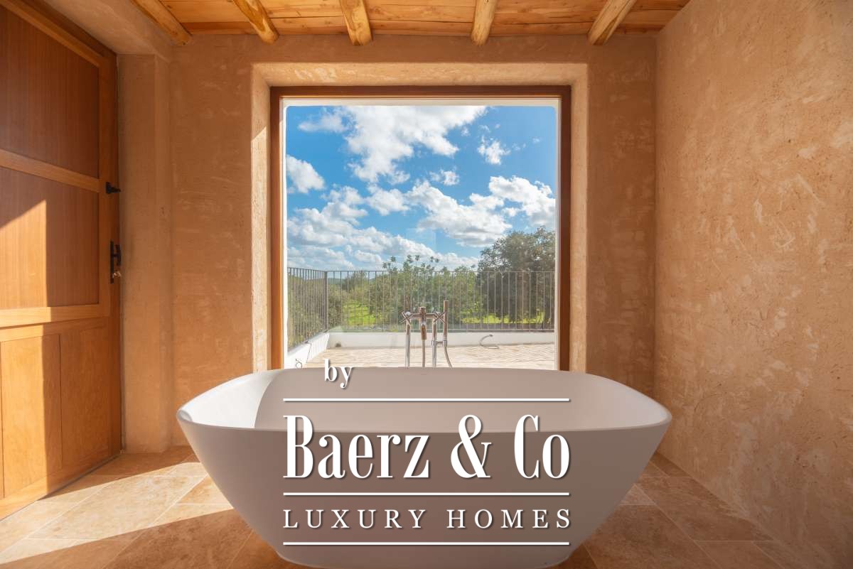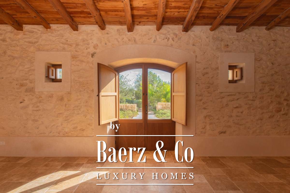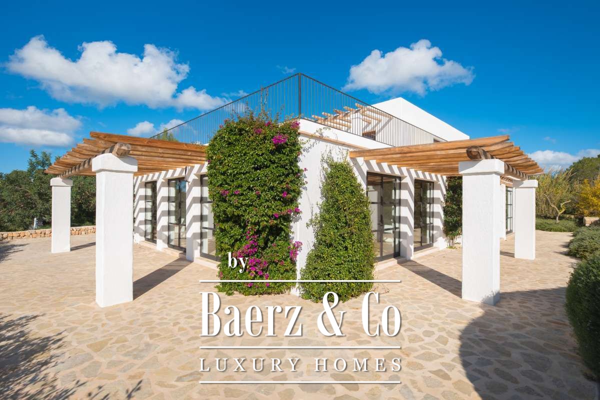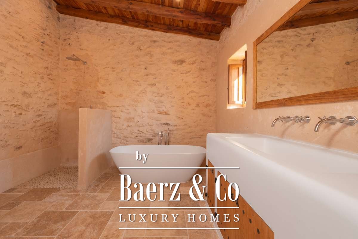 The recently renovated finca blends historic character with contemporary finesse. Every detail of the 620 m² residence, from exposed stone walls to soft, harmonious tones, underlines an enduring elegance. The living areas are open, inviting light and nature into each room, while the seamless integration of kitchen and lounges lends itself to both intimate gatherings and quiet reflection. Six bedrooms and five bathrooms provide refined comfort, with the master suite offering panoramic views and nightly glimpses of Dalt Vila’s illuminated skyline.
