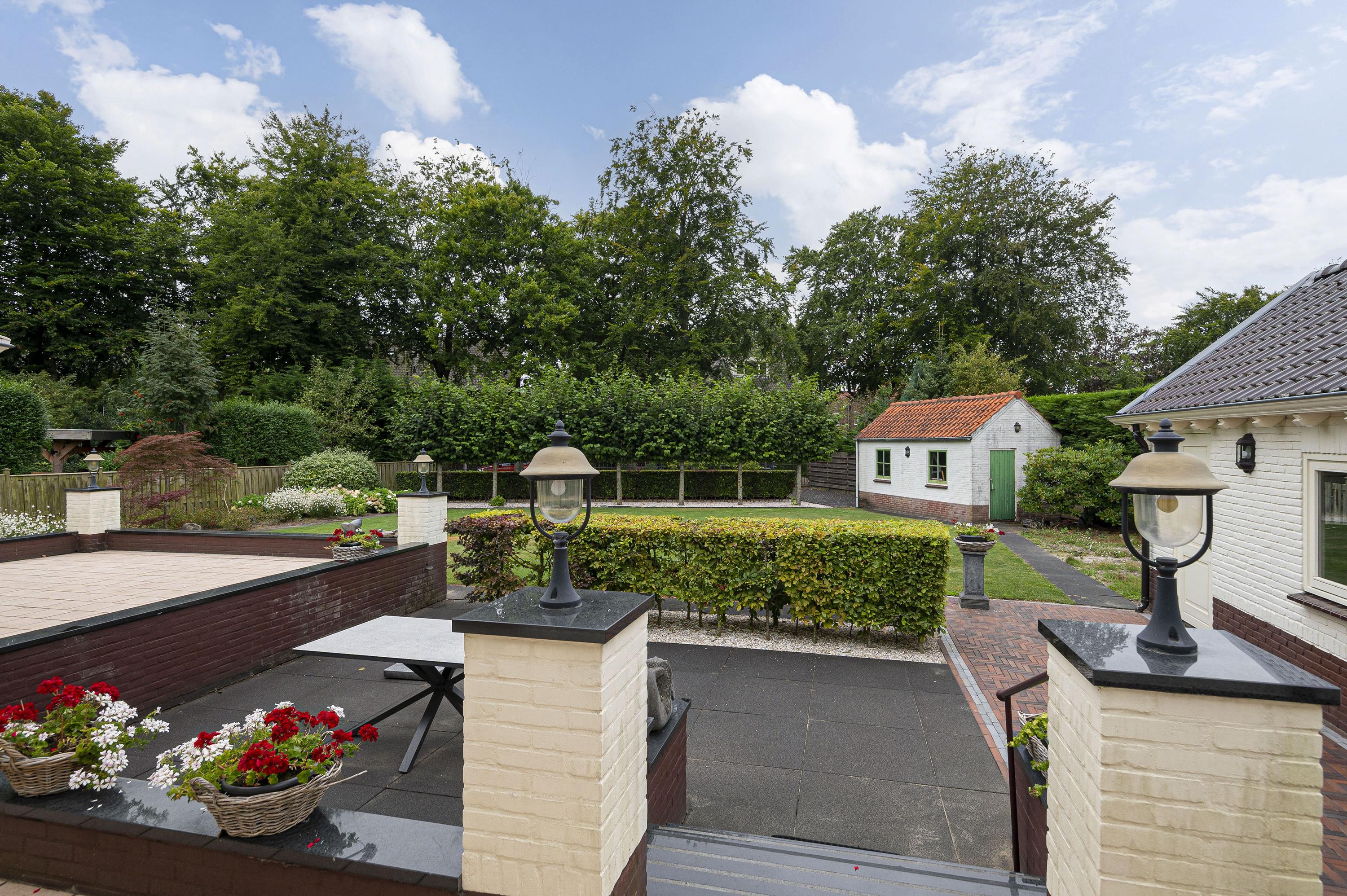 Beautifully landscaped garden with two driveways, several terraces and offers plenty of space for children to play. The garage has a separate toilet and offers enough space for the car. There is also an additional garage at the rear, which has an area of about 16m².