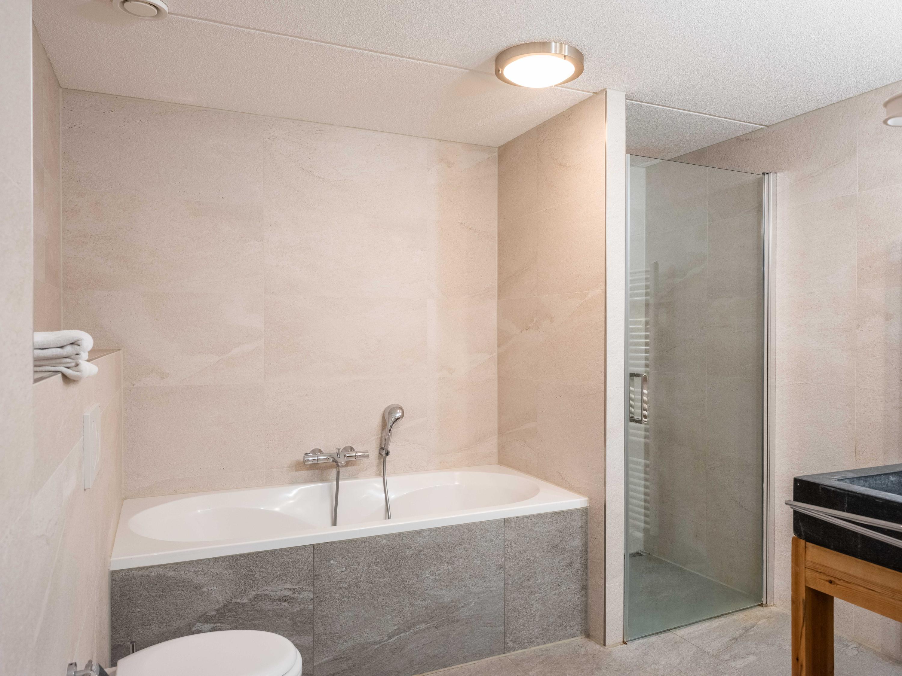 Upstairs, a mezzanine overlooks the living space, suitable as a bedroom. The basement level offers two more bedrooms, a wellness area with a sauna, and a bathroom equipped with a bathtub, shower, and wide washbasin. Outdoors, a green garden ensures privacy and calm, complete with a jacuzzi, front and rear terraces, and a private parking space with charging station. The property is fully insulated, holds energy class A, and offers mechanical and natural ventilation systems.