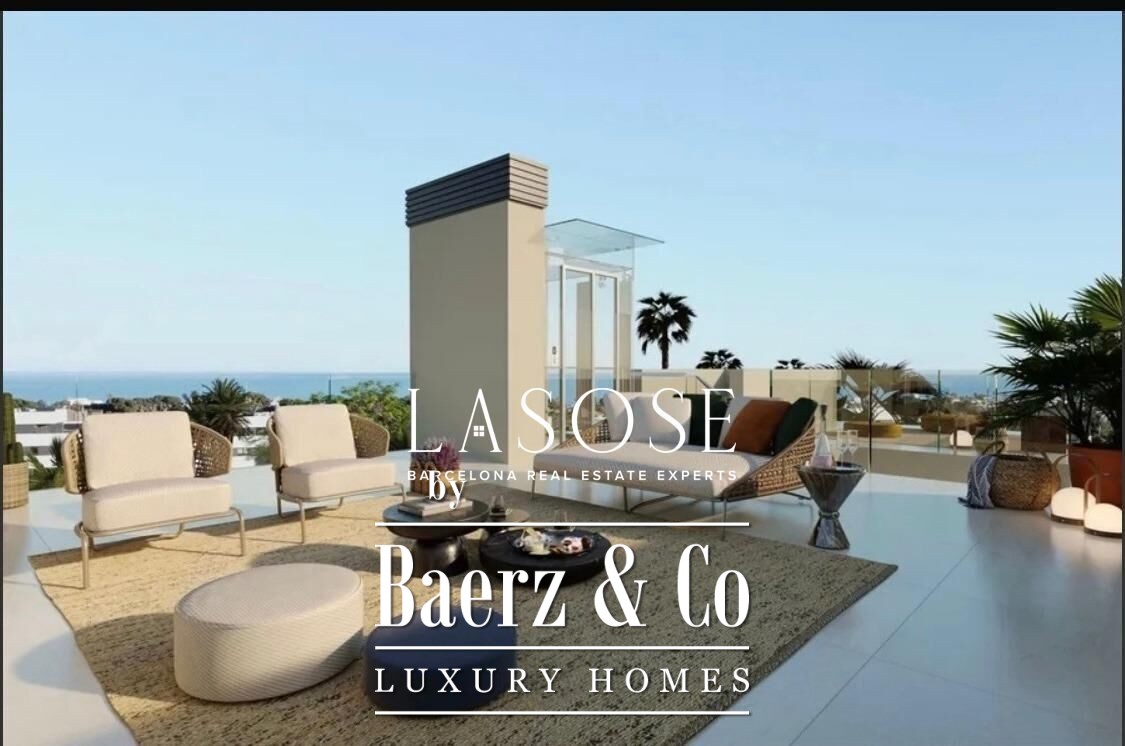 Every detail underscores thoughtful design—DICA kitchen and bathrooms, Hansgrohe taps, Duravit sinks, and walk-in showers, all finished with premium mechanisms and porcelain countertops. The property’s eco-efficient construction features SATE façade insulation, a reinforced concrete structure, and an inverted roof with high-density insulation, supporting underfloor heating, ducted air conditioning, and an aerothermal domestic hot water system. Motorized blinds provide comfort and discretion in all six bedrooms and across five bathrooms. An elevator links every floor, including direct access to the rooftop terrace, accentuating the ease of movement through the villa’s flowing interiors.