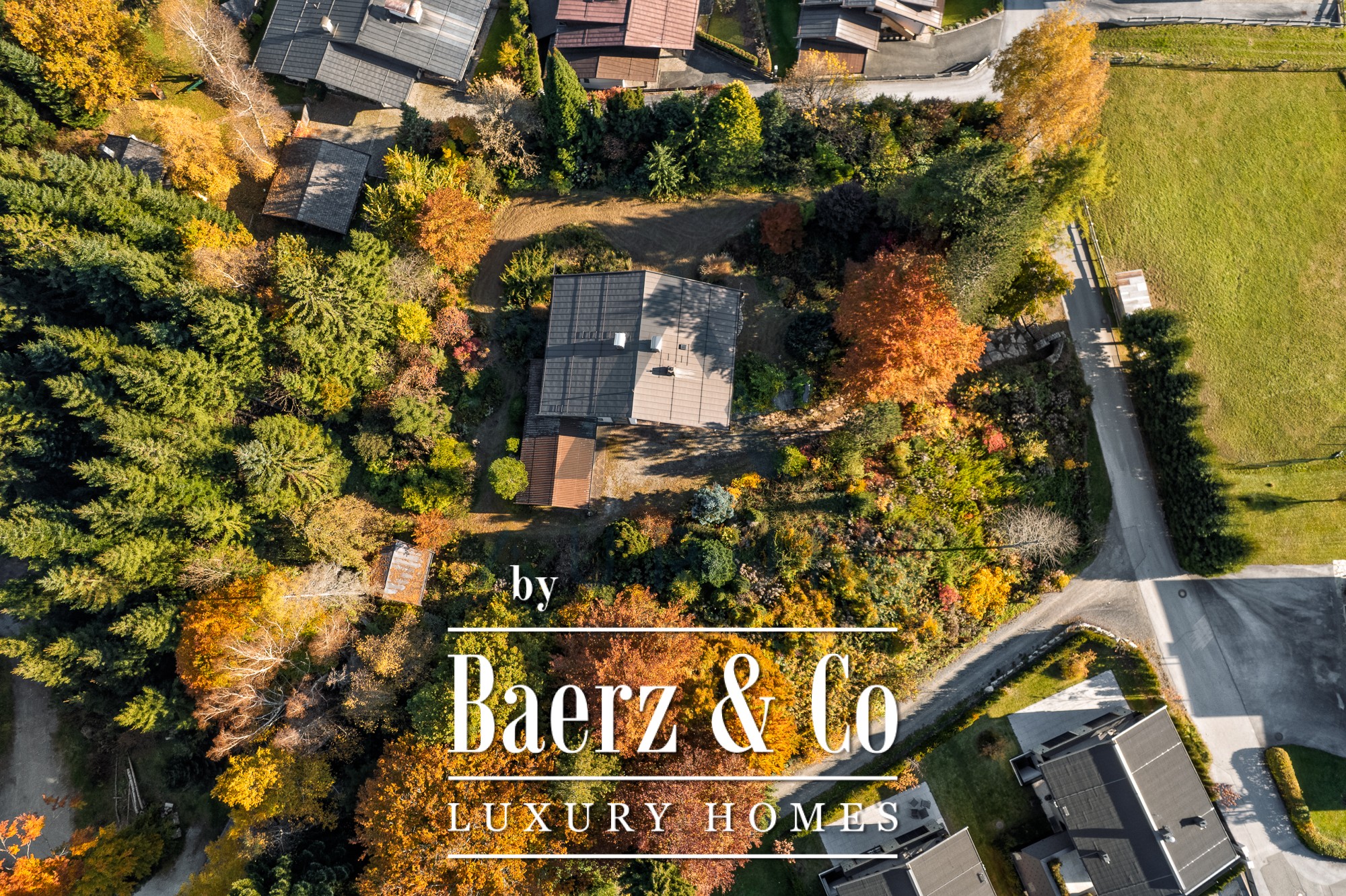 Nestled in the impressive natural surroundings of the Niederkaiser Mountains, surrounded by mature trees, near an idyllic pond landscape, and with views of the Kitzbüheler Horn and the surrounding mountains, this property is in a prime location in St. Johann in Tirol. It is a very sunny, gently sloping cul-de-sac, in an idyllic forest setting with breathtaking panoramic views.