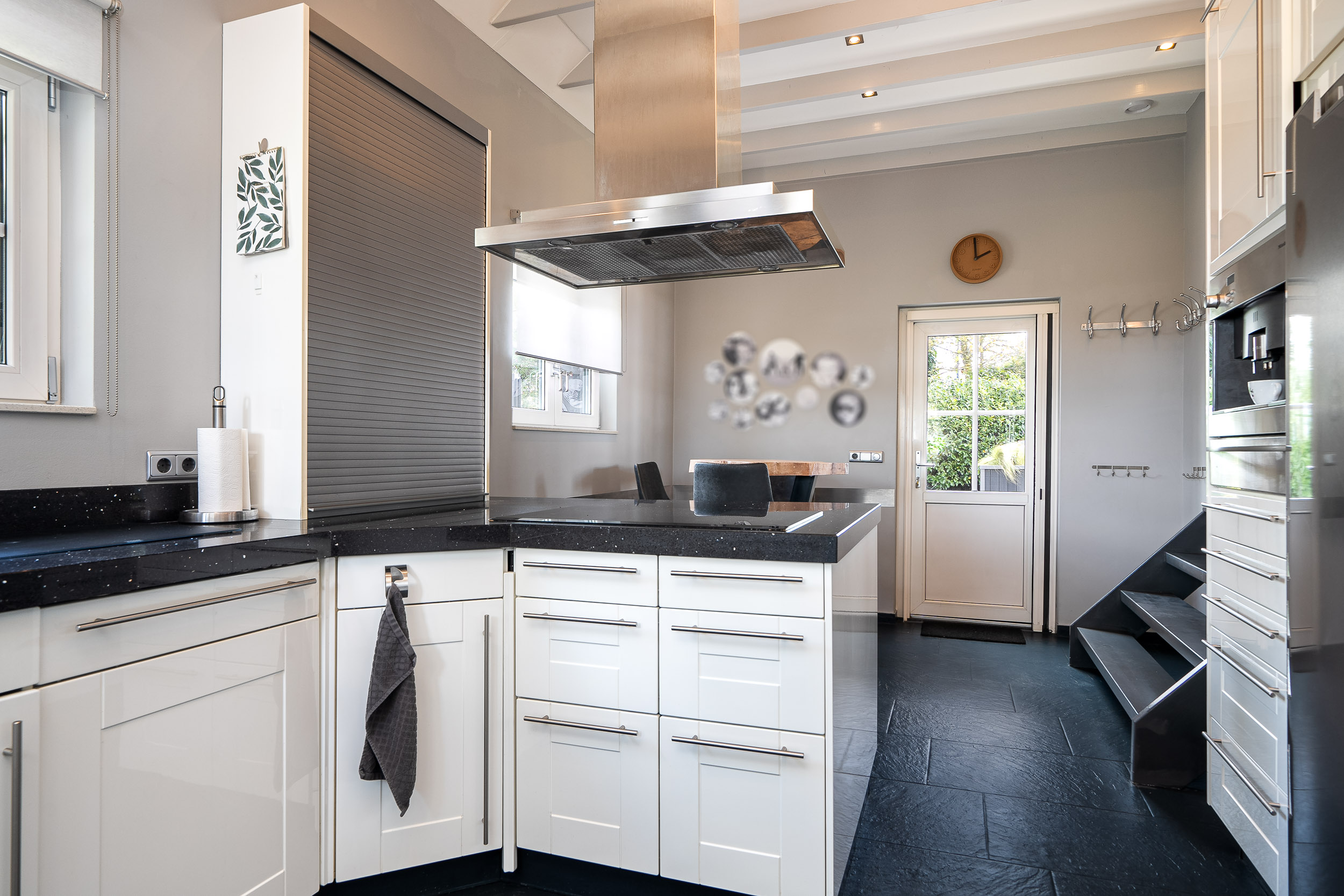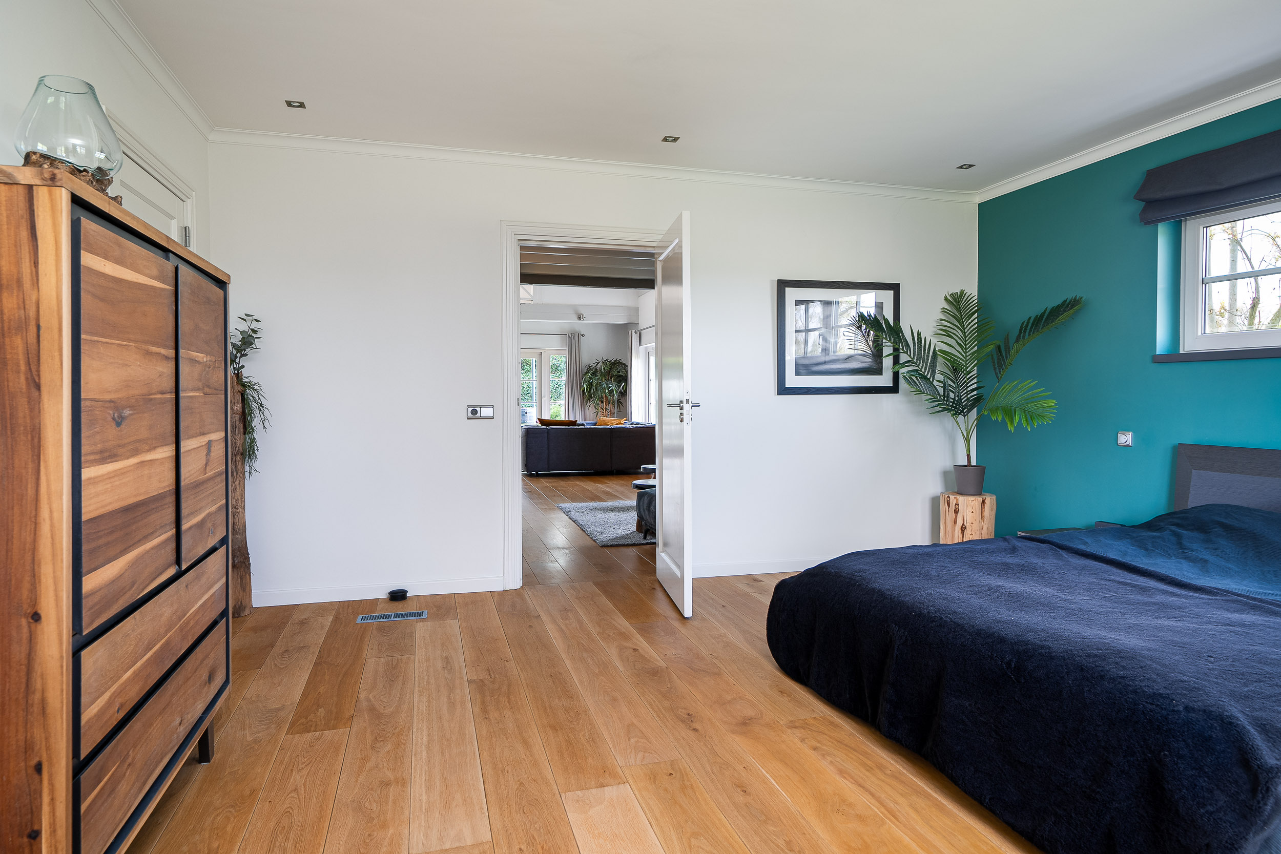 In a prime location near the IJsselmeer, adjacent to a marina with direct access to all waterways in Friesland, this villa was completely renovated in 2004 and is situated on a spacious, fenced plot with full privacy and stunning Frisian panoramas. The tranquility, greenery, water, ever-changing skies, and sense of freedom are the defining features of this home. This well-insulated villa of 245m² is designed for lifelong living, featuring a spacious living area, four bedrooms, two bathrooms, a luxurious kitchen with utility room, and a beautiful veranda with scenic views. The double garage with an upper floor offers an abundance of space and possibilities. The fully insulated home office, studio, or guesthouse with breathtaking views of nature serves as a true source of inspiration. The architecturally designed garden, maintained with a robotic lawn mower, is easy to care for and playfully arranged with various fruit trees, hedges, and reed-lined waterways. The stylishly paved driveway and entrance gate highlight the transition to the lush green garden that remains vibrant year-round.