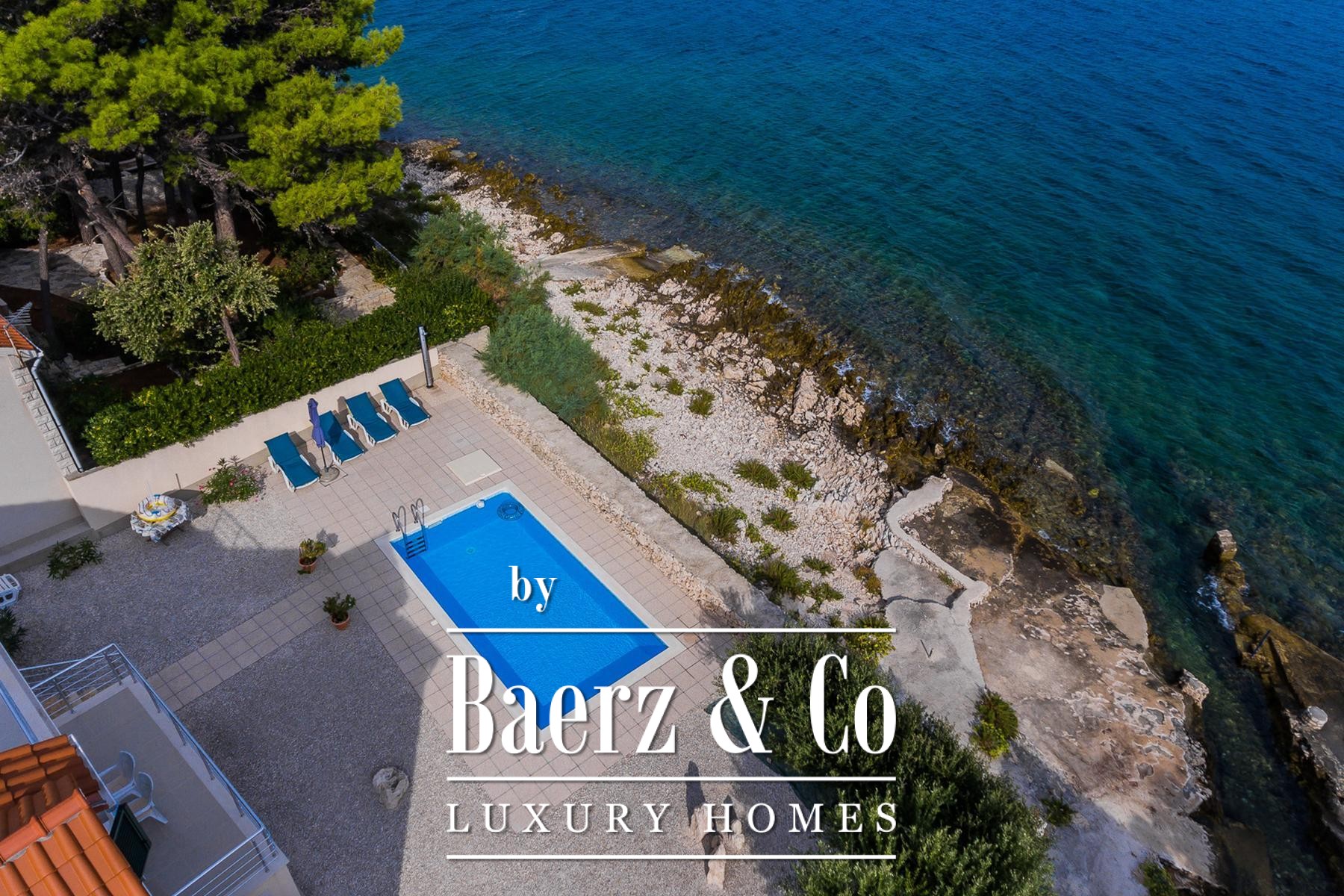 Villa Supetar with pool first row to the sea is set in the tranquil village of Splitska on Brač, delivering a rare intersection of privacy, immediate Adriatic access, and restrained architectural clarity. This villa occupies a 605 m² plot, with a net living area of 220 m² distributed over three spacious floors.