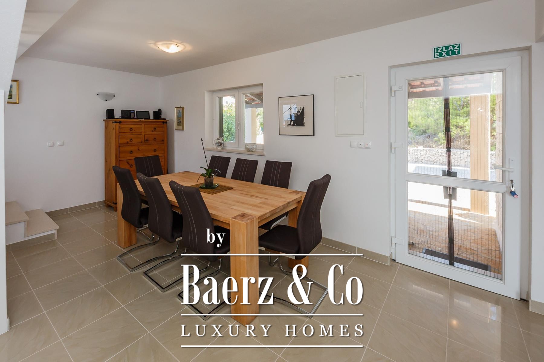 To the front, the terrace opens to the sea with a private pool and sunbathing area, framing the horizon and slow Mediterranean rhythms. The property is presented fully renovated and elegantly furnished, ready to welcome those who value both presence and peace. This villa for sale in Supetar stands as a discreet retreat on one of Croatia’s most authentic coastlines, offering both proximity and seclusion.