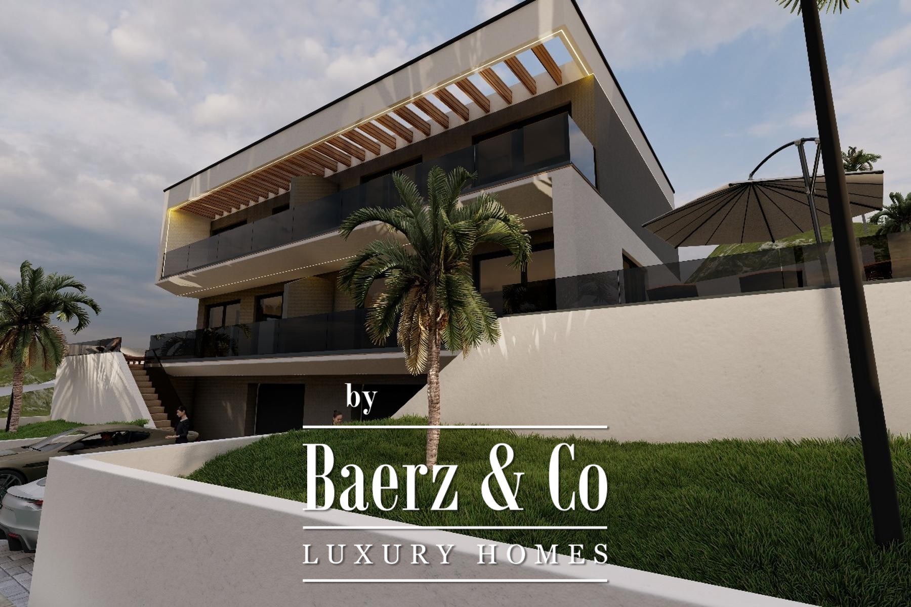 For sale is a multi-residential villa in a rough-construction (roh-bau) stage, located in the third row from the sea in Sutivan on the island of Brač. The total living area is approximately 360 m², and the property sits on a 494 m² plot.The property is designed as two residential units, each with approximately 180 m². One is oriented to the northeast, and the other to the northwest. Each unit has a ground floor with a garage, laundry room, and an additional room that can be customized according to the future owner’s needs. The first floor features a kitchen with dining and living areas, a terrace, one bedroom, and a bathroom. On the second floor, there are three bedrooms, each with its own bathroom and a spacious balcony.In total, the house has eight bedrooms and eight bathrooms,