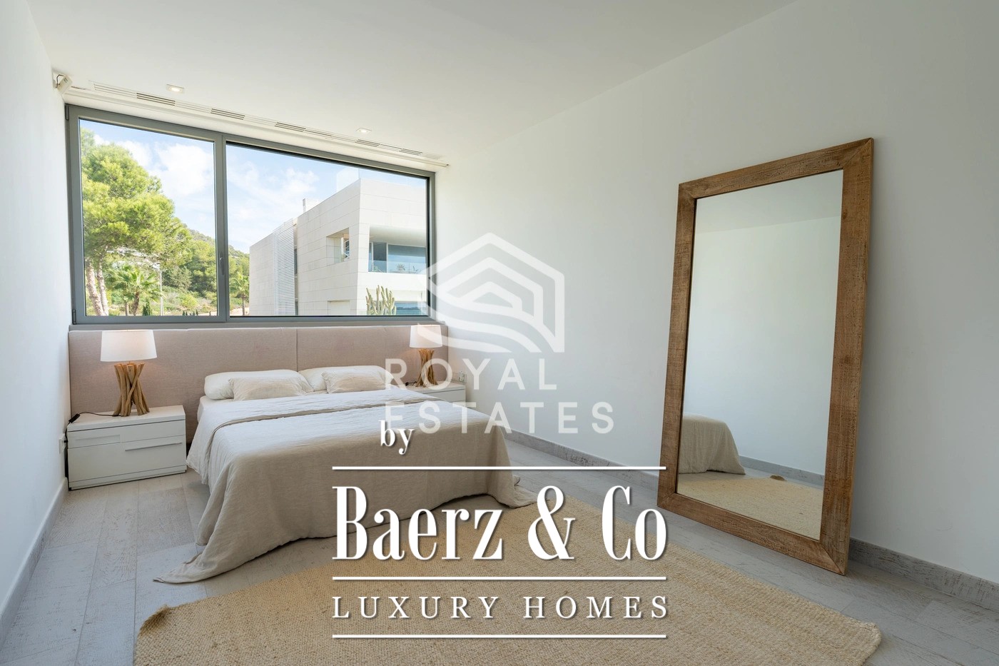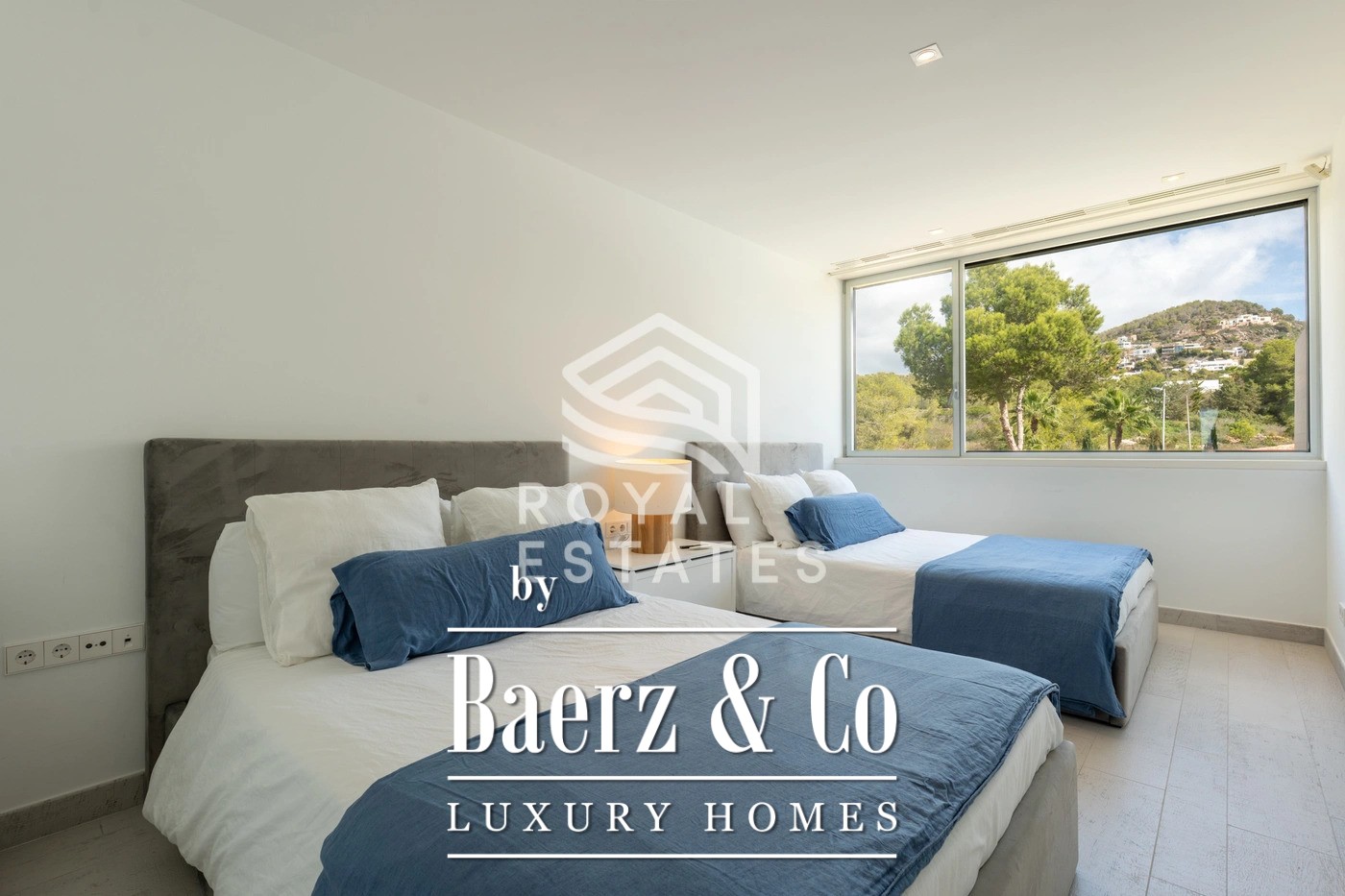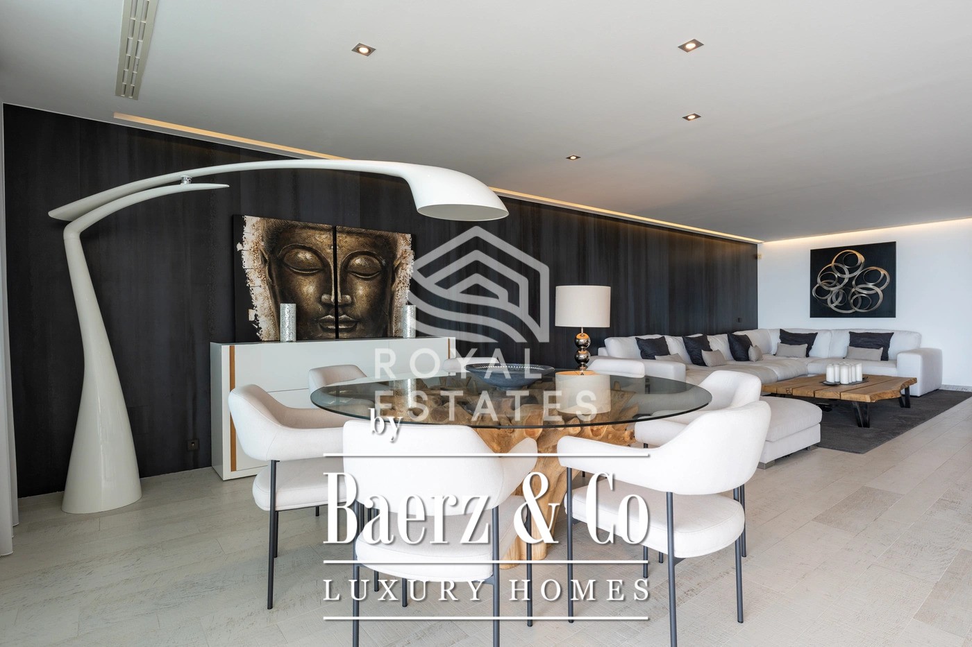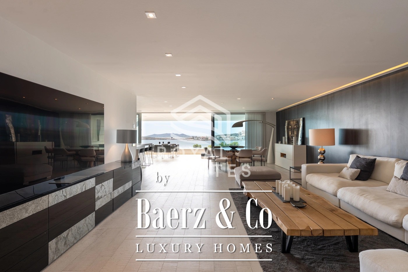 This exceptional duplex penthouse is located in the exclusive Es Pouet residential complex, one of the most prestigious and secure communities on Ibiza. Set in the beautiful bay of Talamanca, just minutes from Marina Botafoch and Ibiza Town, this property represents the ultimate expression of modern island living. With breathtaking panoramic views over the Mediterranean Sea and the historic silhouette of Dalt Vila, it offers a unique combination of luxury, privacy, and convenience. Occupying a total built area of approximately 428 m2, with 347 m2 of usable interior space, this residence has been thoughtfully designed to maximize natural light and create a seamless flow between indoor and outdoor living. The main floor features a spacious open-plan living and dining area with floor-to-ceiling windows that open onto a large terrace overlooking the bay. The contemporary kitchen is fully equipped with high-end appliances and an elegant kitchen-office layout that blends functionality with style. The property includes four generous bedrooms, three with its own en-suite bathroom, ensuring complete privacy and comfort for residents and guests alike. The master suite is particularly impressive, with direct terrace access and stunning sea views. Additionally, there is a guest toilet and a separate laundry room for added convenience. The interiors are defined by clean lines, natural tones, and premium materials that reflect understated elegance and quality craftsmanship. An architectural highlight of this penthouse is its spectacular