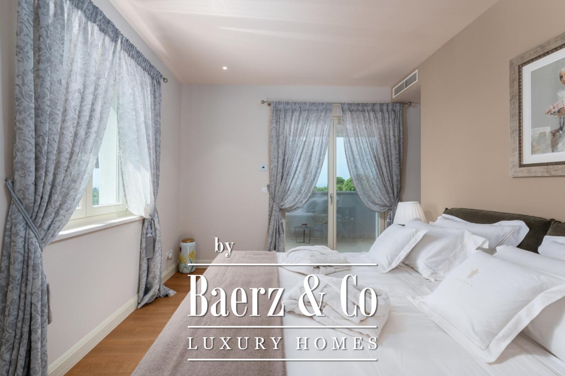 Located in the north-western part of the Istrian Peninsula, in a green oasis full of neatly maintained green areas and olive trees, this 308 m² villa perfectly blends into its natural surroundings, with its impeccably landscaped and maintained garden providing a true sanctuary. The villa is carefully built with attention to every detail, and its interior is a true visual delight that will leave you breathless.The entrance to the villa is marked by large doors leading into a spacious area with high ceilings, making the space even more luxurious and bright. On the ground floor, there is a large, bright living room, a kitchen area, and a dining space with a large table, perfect for family gatherings. From the living room, you have a view of the garden and the impressive 48 m² pool. The covered outdoor terrace with its own barbecue provides the perfect space for relaxation and gatherings in the privacy of the green oasis.On the ground floor, there are also two bedrooms, one of which has direct access to the pool, creating a perfect blend of indoor and outdoor space. A beautiful