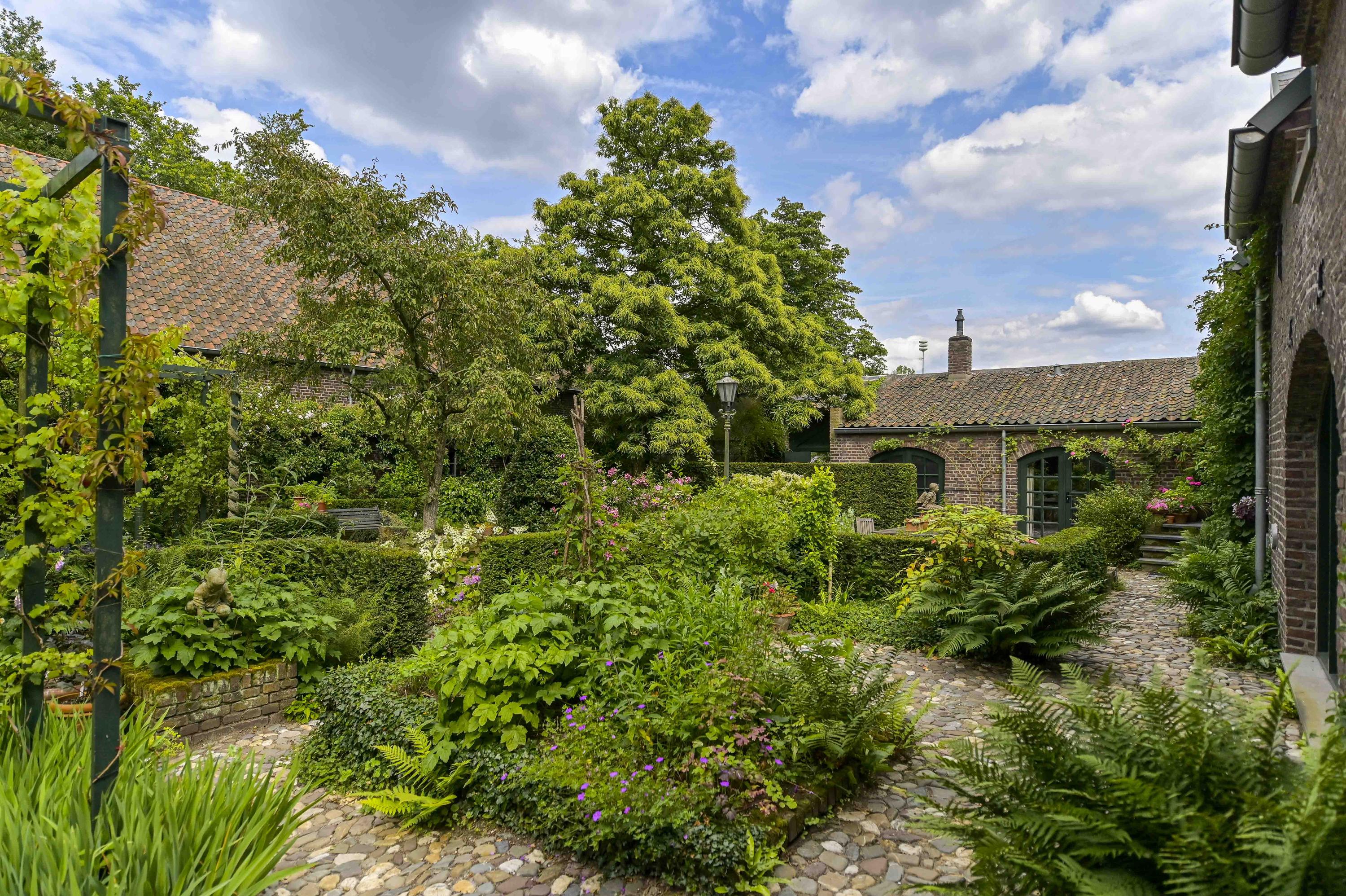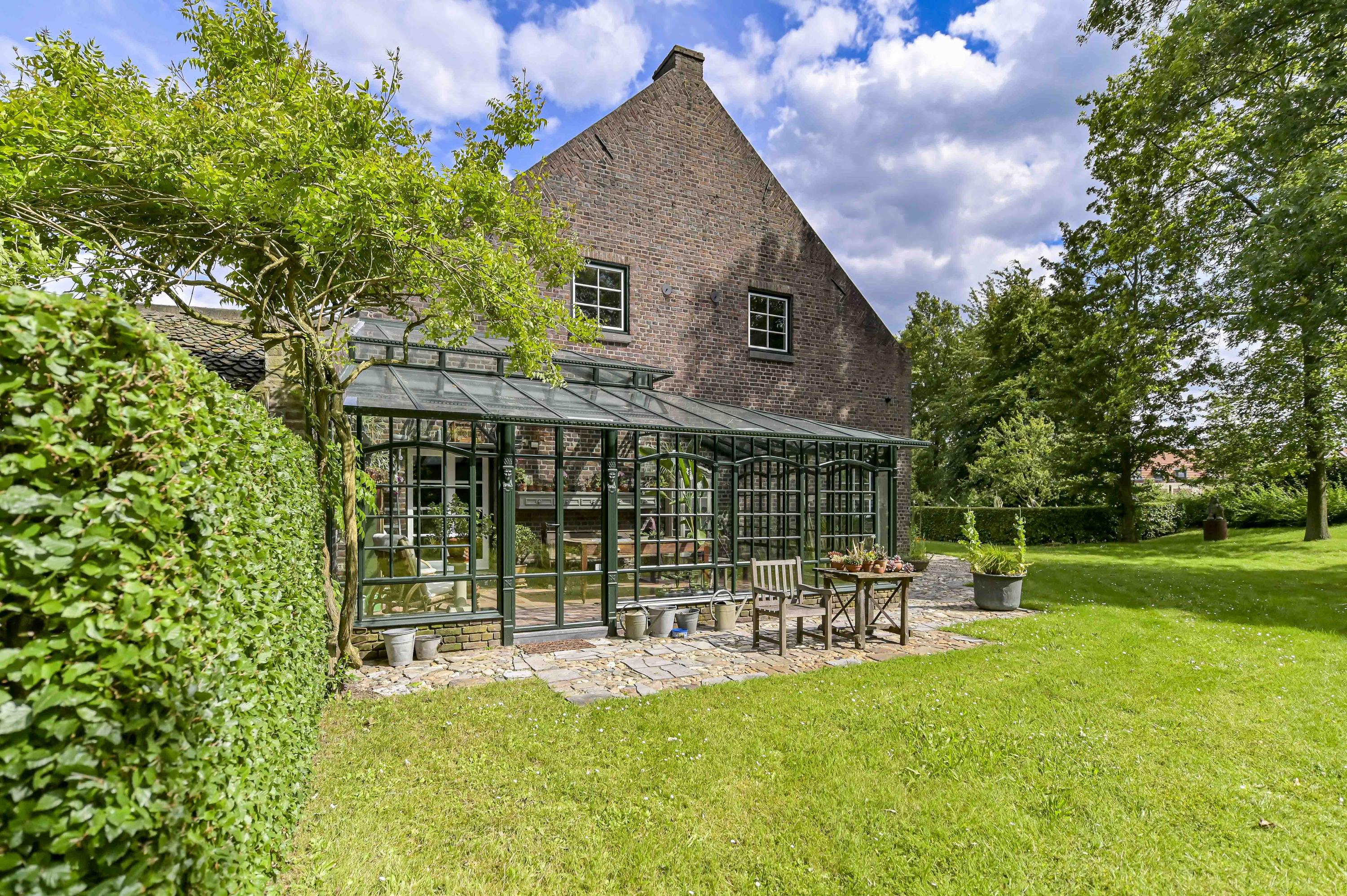 In the rural outskirts of Tegelen lies this beautifully maintained carré farmhouse – a true gem with a characteristic courtyard, covered terrace, and a stunning landscaped garden. Set on a generous plot of 7,616 m² (plus an additional 600 m² currently leased from the municipality), this unique property offers privacy, space, and timeless charm. The farmhouse is listed as a municipal monument.
