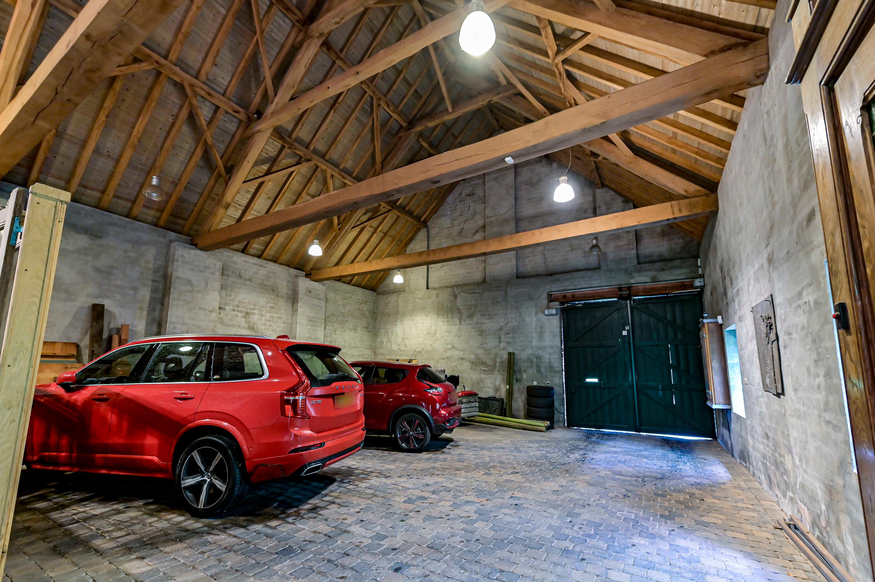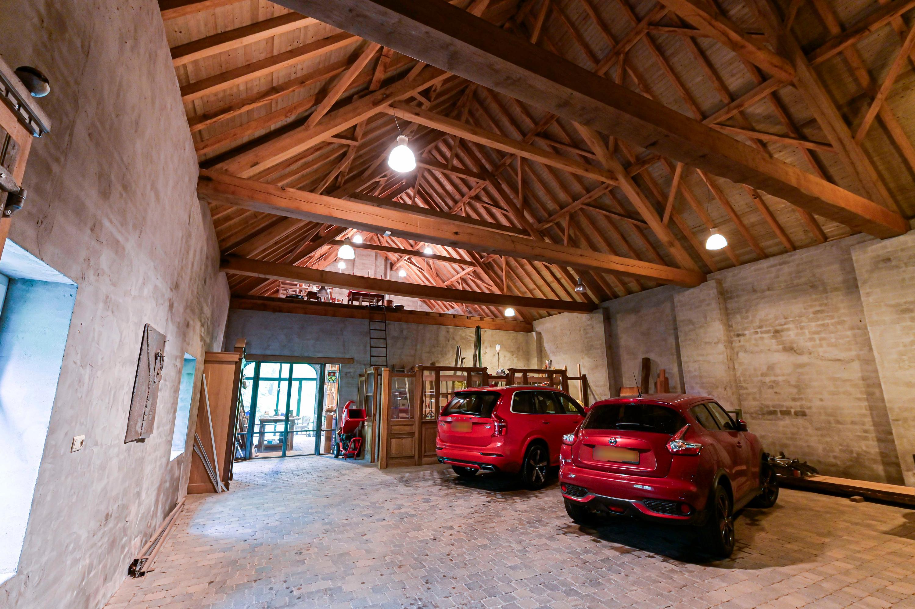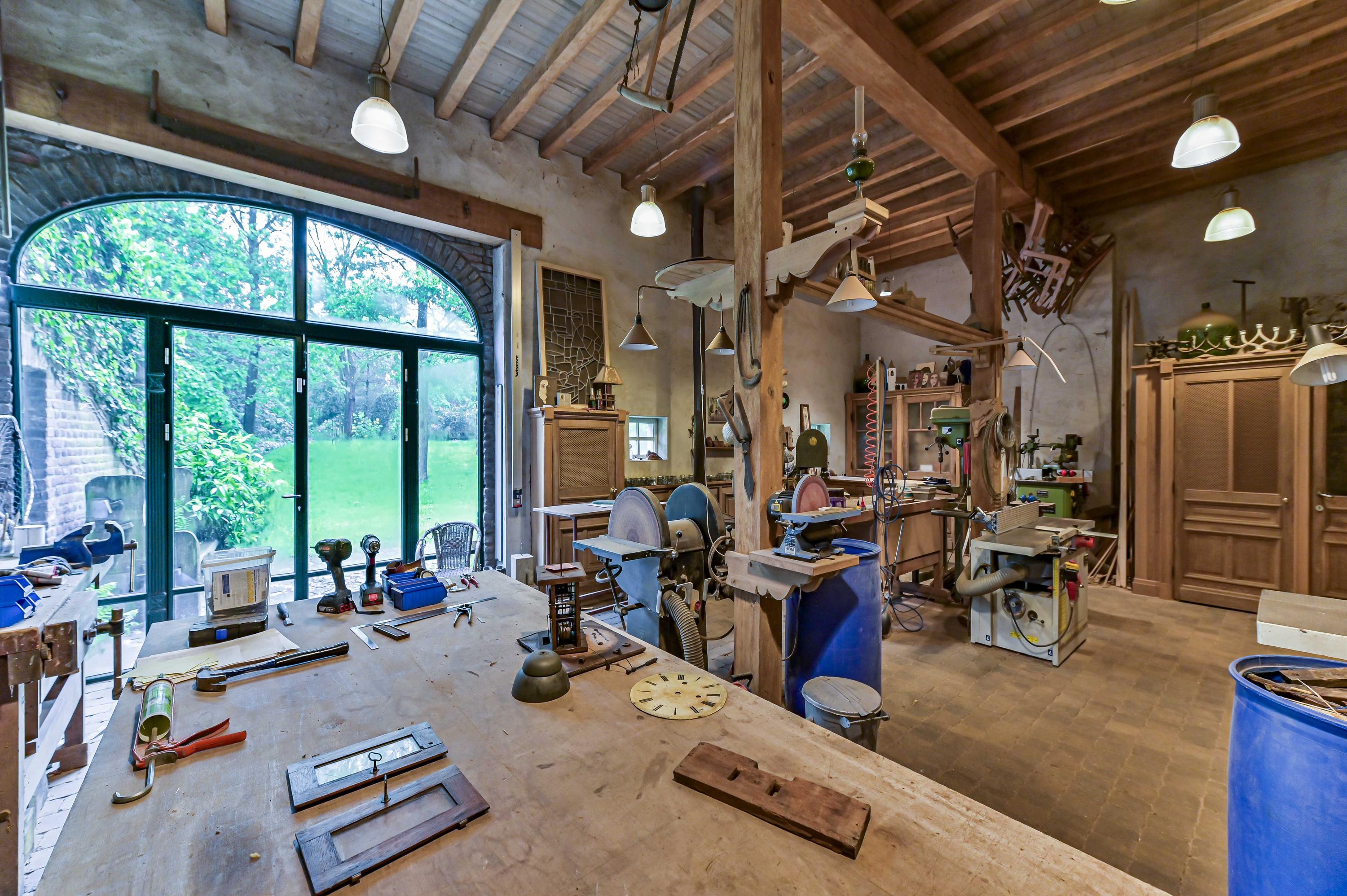 A very spacious and high garage, finished to perfection. A large electric wooden gate provides access to the driveway. Inside, there is a loft and glass doors leading to the fully equipped workshop.