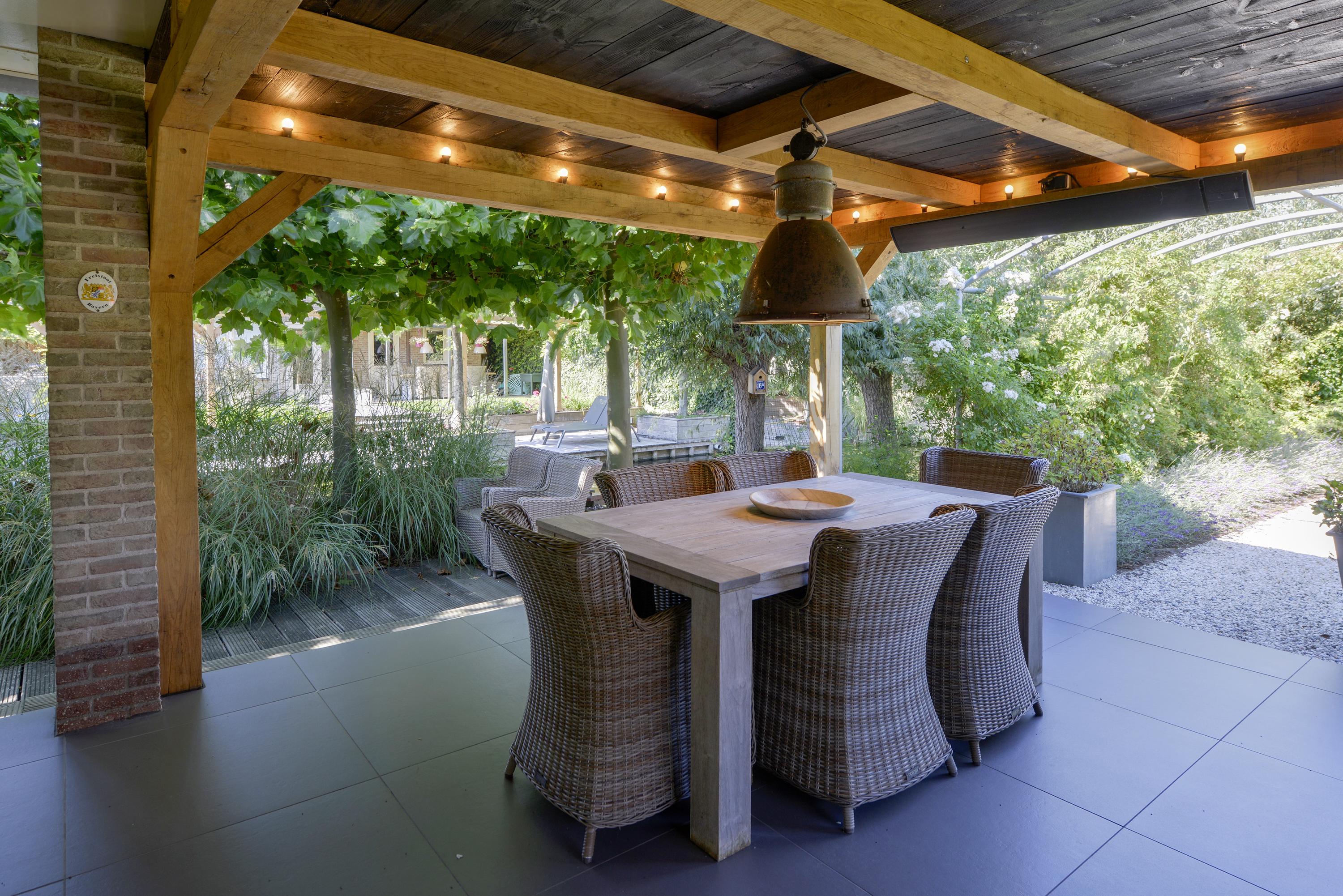 The villa is surrounded by a beautifully landscaped garden with plenty of privacy, a large rose arch, a garden shed with a canopy, and a beautiful oak veranda. Here you can enjoy the outdoors all year round; a beautiful extension of the living room.