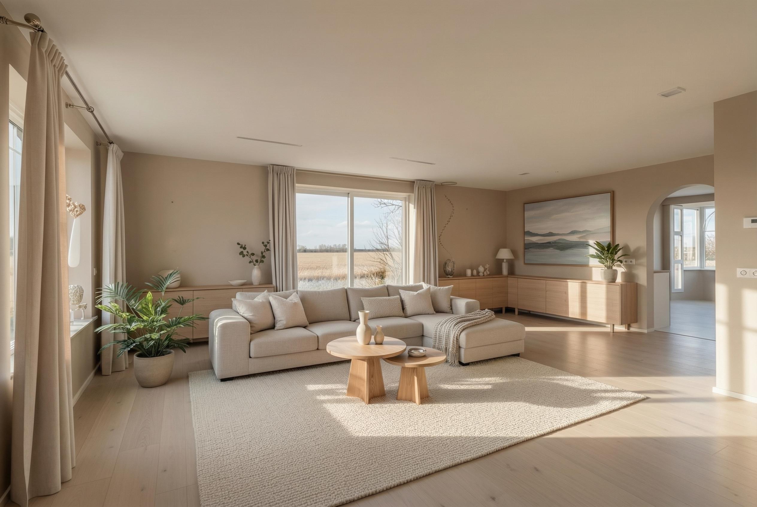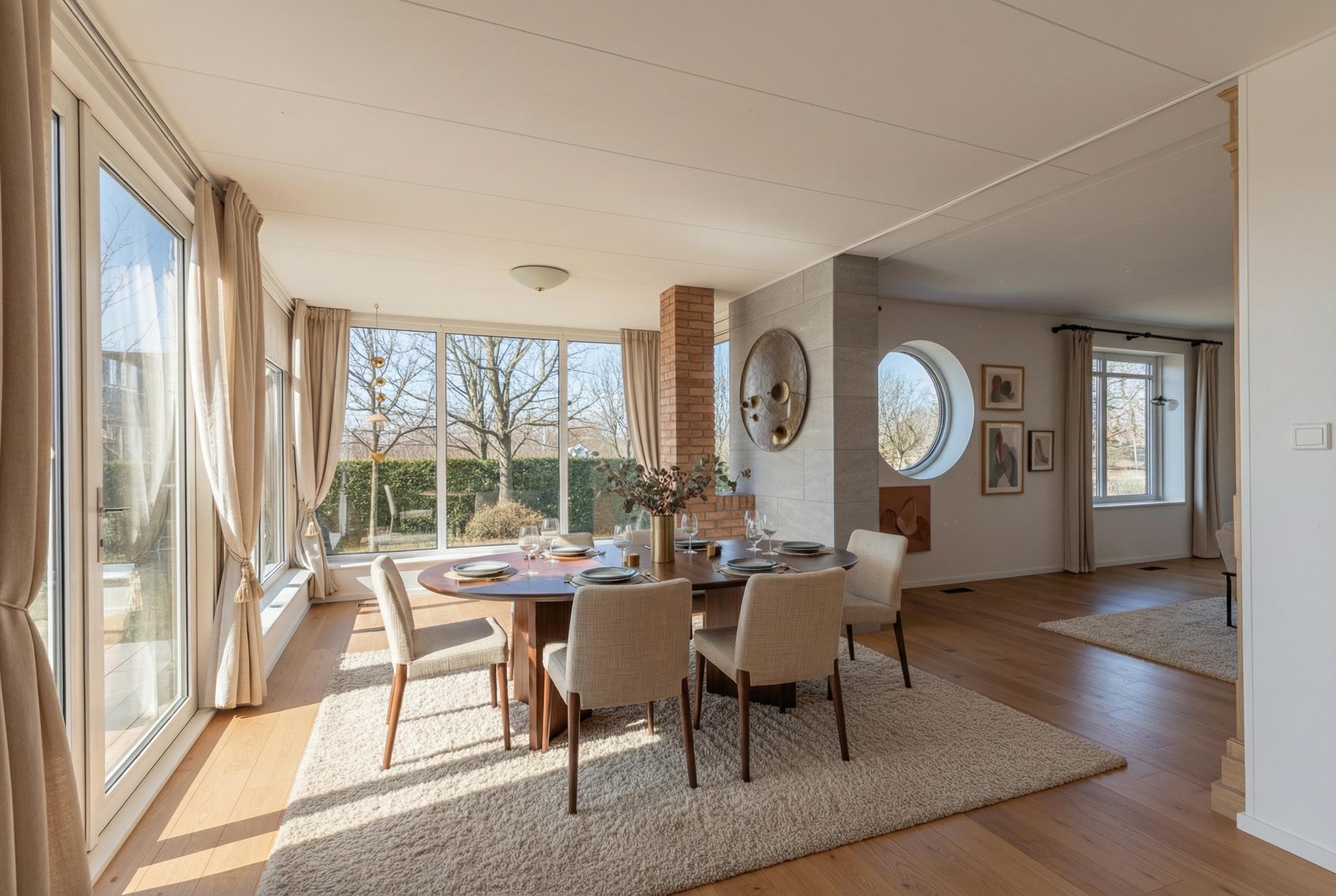The entrance leads into a spacious hallway providing access to the various rooms. The generous living room is oriented towards the water and the typical Frisian vistas and, thanks to the large windows, offers breathtaking views. Adjacent is the conservatory with double garden doors, a wonderfully bright space that seamlessly connects indoor and outdoor living.