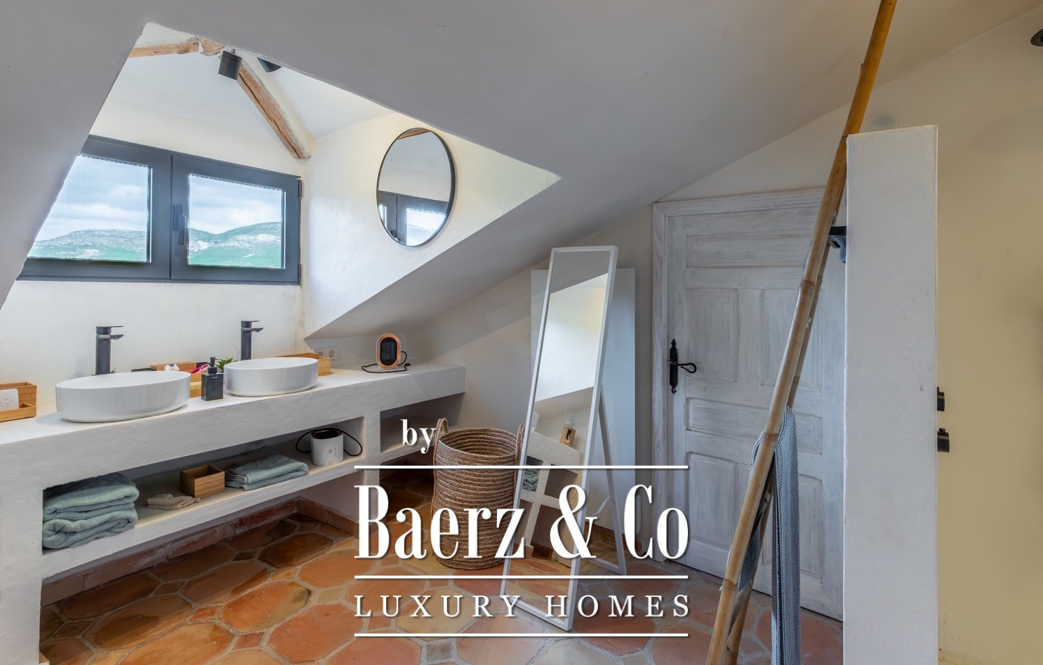 Seven bedrooms and five bathrooms ensure comfort and privacy, including two en-suite and an additional outdoor bathroom. The kitchen is equipped with Miele and Smeg appliances. Light filters through spacious terraces, while a large heated pool and fully fenced areas reinforce an atmosphere of security and calm. The estate’s infrastructure offers genuine independence, with natural spring water storage of 21,500 liters, 35 solar panels with advanced lithium batteries, and a 23 kVA emergency generator.
