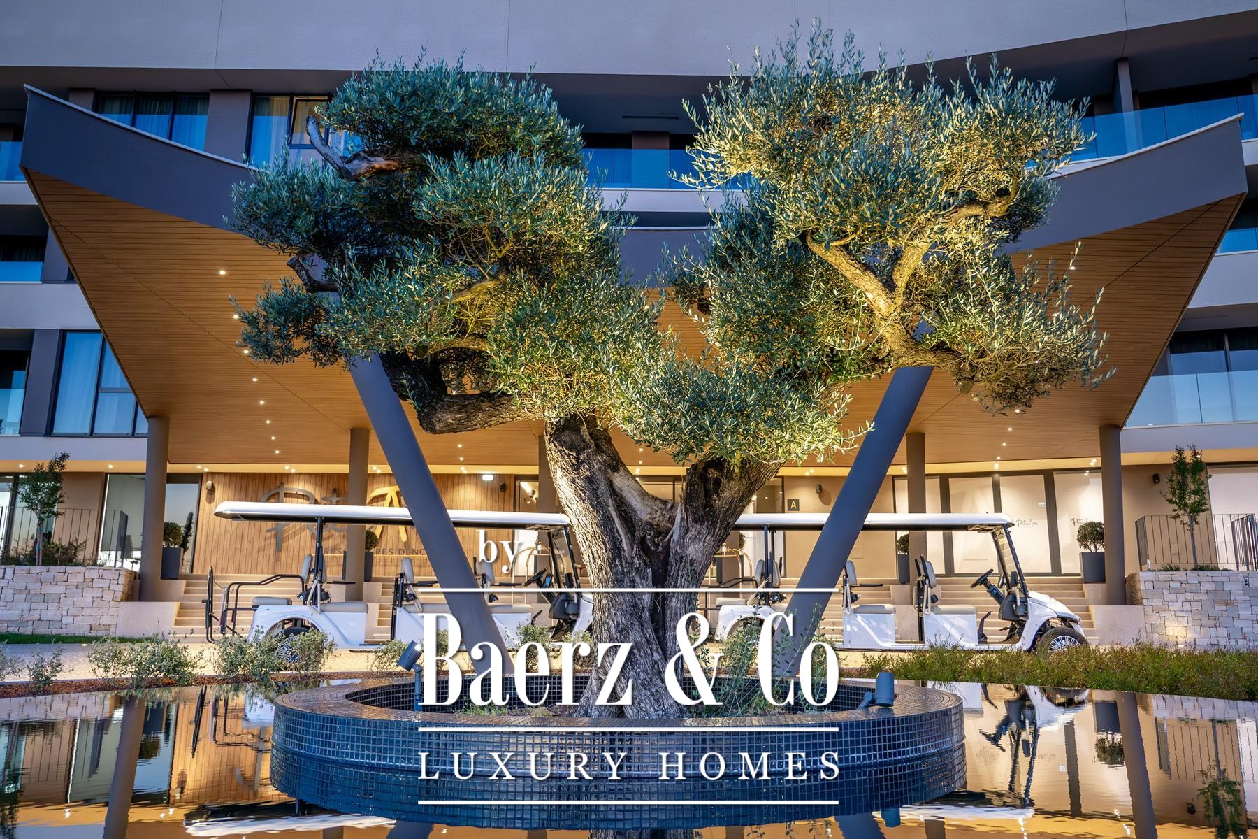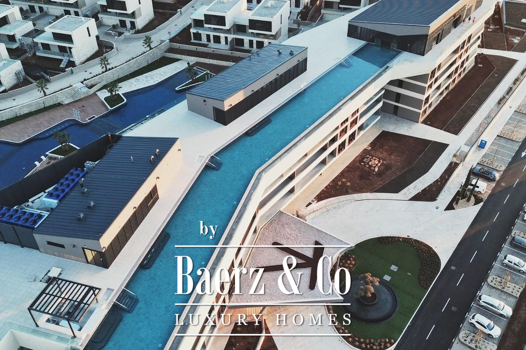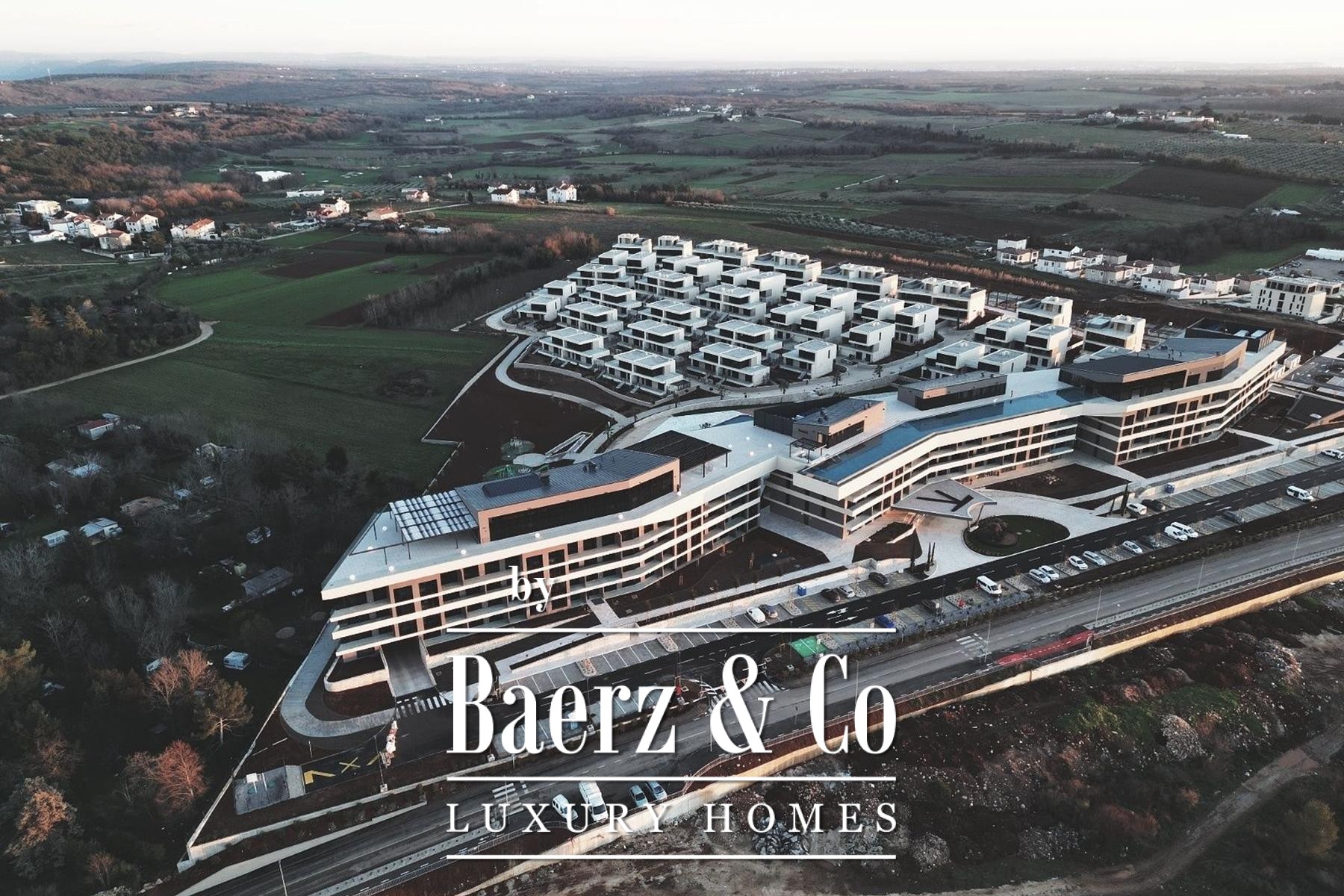 a rental pool option with pre-agreed annual terms. The resort features sports courts, swimming pools, a gym, a beach, a children's corner and playground, various shops, a SPA center, concierge services, a reception, and more. Petram Resort is located in close proximity to a golf course, with Pula and Trieste airports 90 km away, and the Portorož sports airport just 18 km away. For more information, we remain at your disposal.
