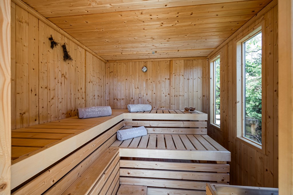 - Features: Veranda with wood stove / Jacuzzi / walk-in closet / sauna / Quooker