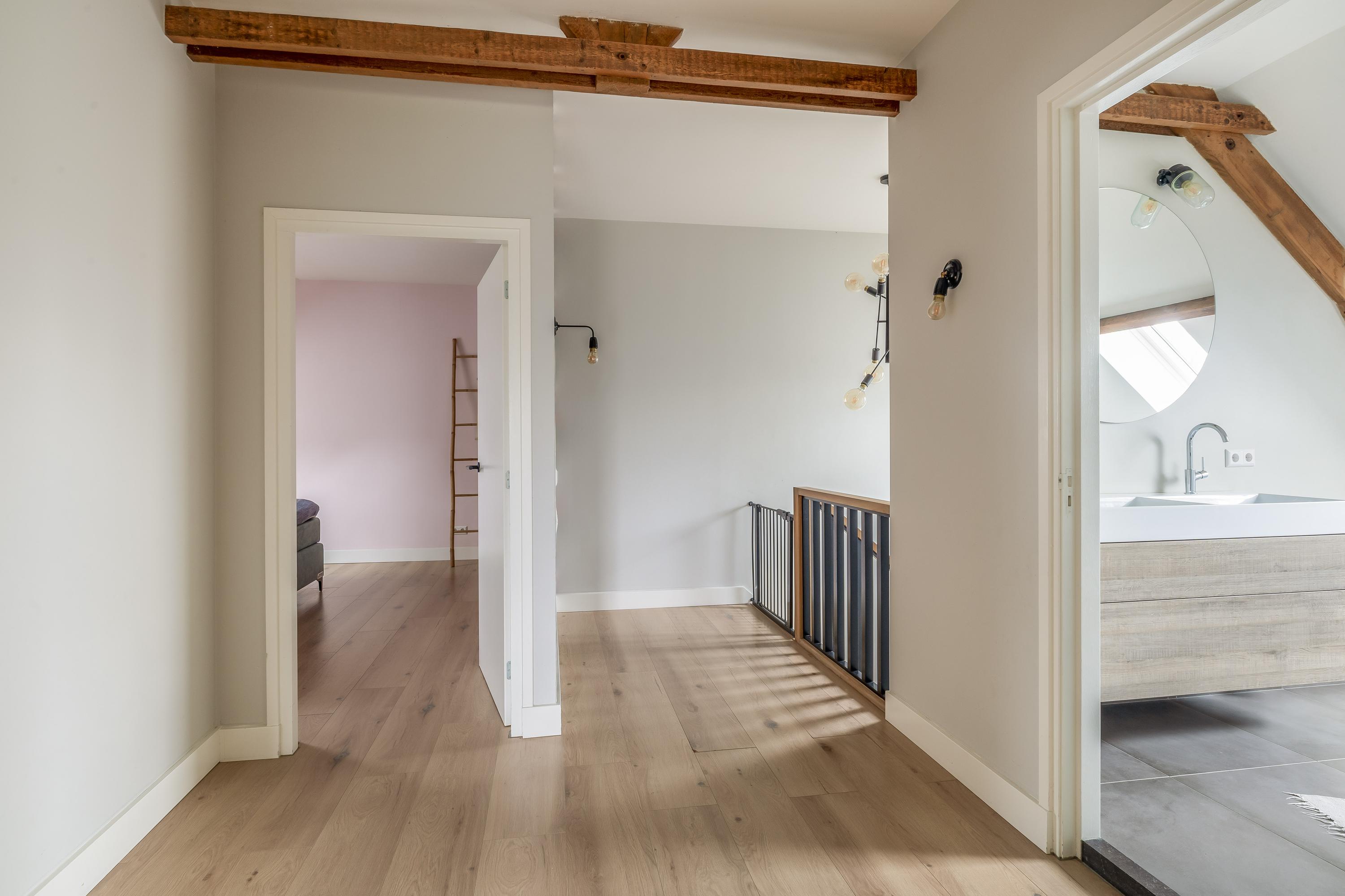 With a living area of 226 m², the property offers a comfortable and move-in ready living space. The living areas are spacious and light, flowing logically into one another. The layout is well thought-out, featuring, among other things, a kitchen-diner and a bedroom on the ground floor. Upstairs, there are three spacious bedrooms and a modern bathroom, where exposed timber structures contribute to the atmosphere and authentic character of the whole.