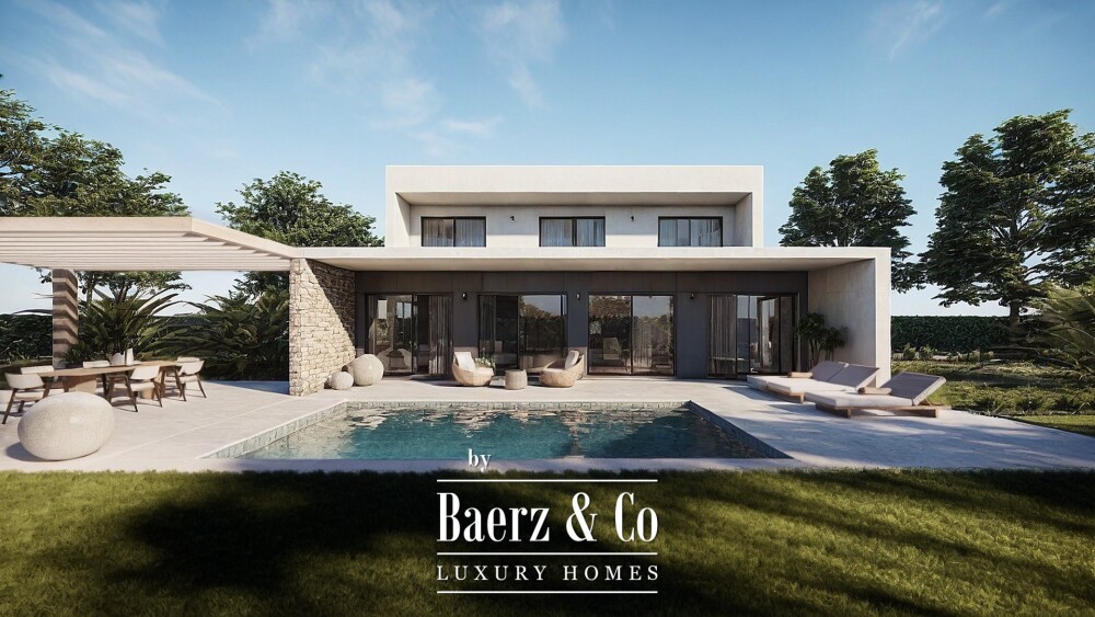 Upstairs, two master suites offer private dressing rooms and bathrooms, each oriented to capture the Mediterranean sea views, with two additional bedrooms ensuring flexibility and calm. Throughout, ceramic and natural stone, high-performance joinery, and considered details create a tactile sense of warmth and elegance.