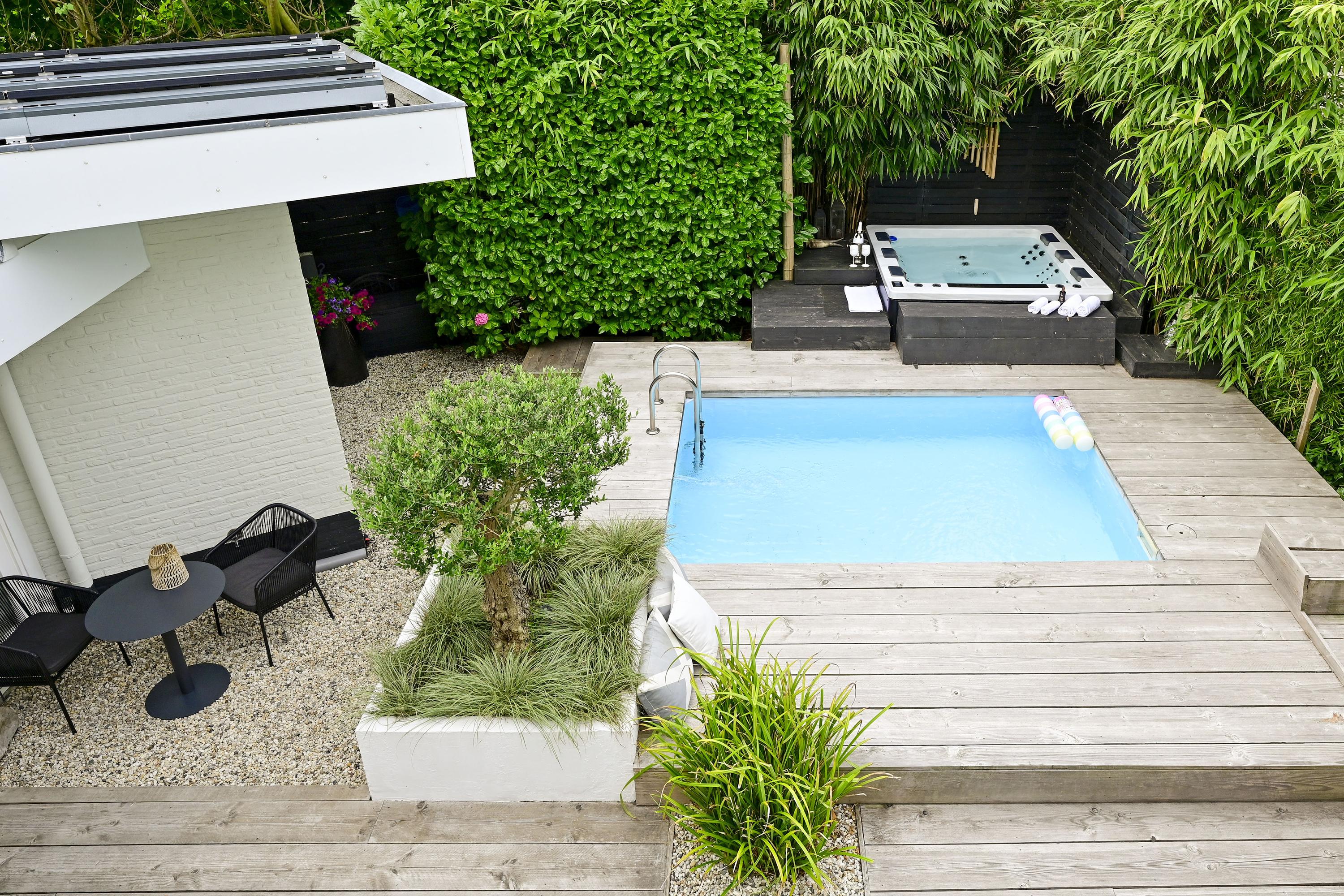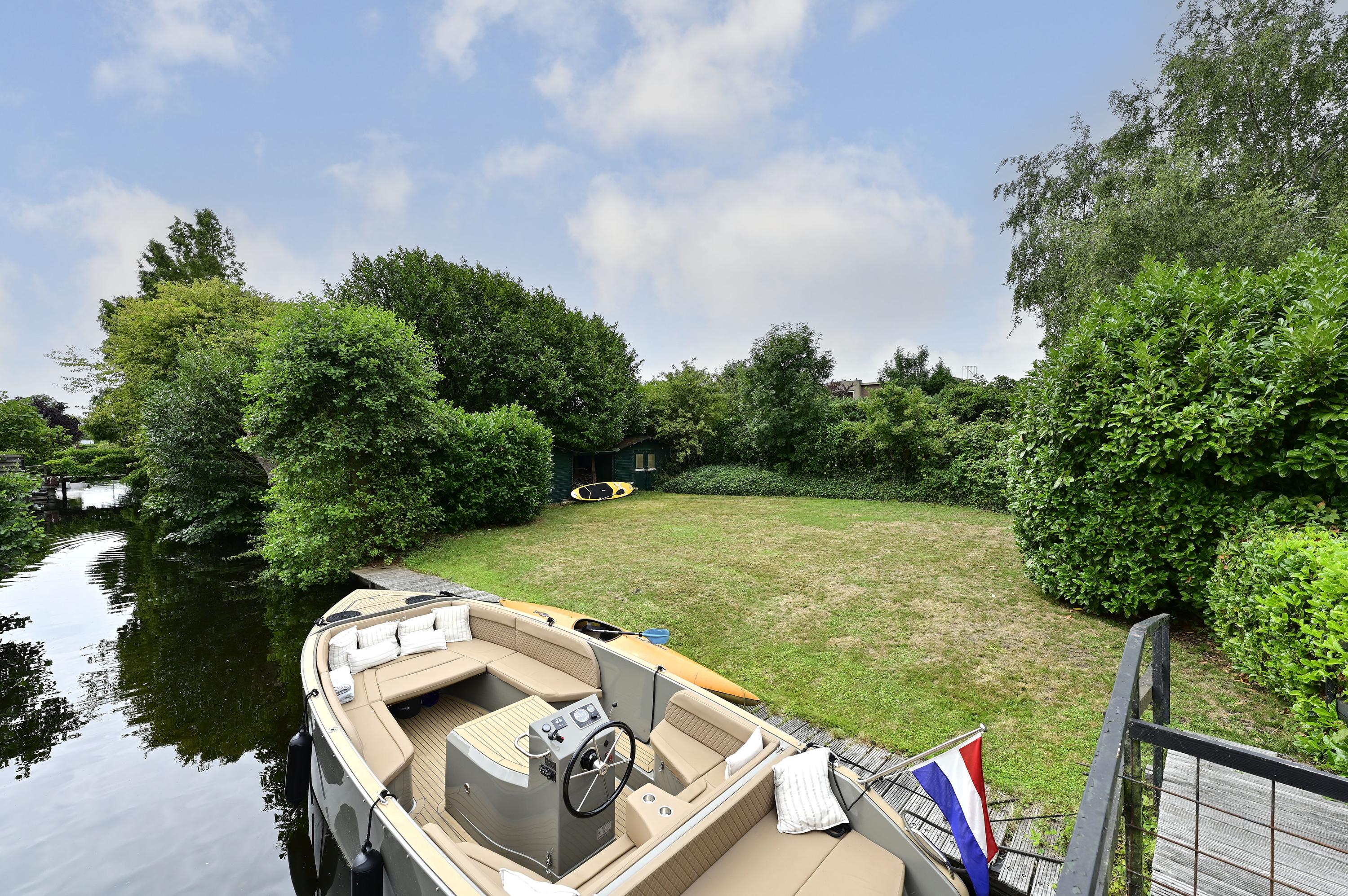 The villa stands on a generous plot with optimal sun exposure and a beautifully landscaped garden. Here you will find several terraces, a covered veranda with BBQ, a compact swimming pool and a six-person jacuzzi. Via a charming bridge you reach a leased parcel from the water authority with moorings for multiple boats – ideal for water sports enthusiasts.