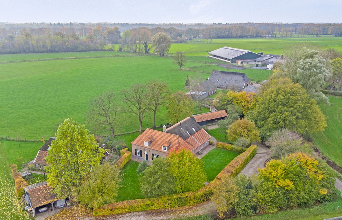 't Norde is as impressive as it is beautiful; a classic, voluminous hall house T-shaped farmhouse from 1863, surrounded by a delightful garden. The house has had several predecessors on this site, with the oldest mention dating back to 1476. The current house, designated a municipal monument by the municipality of Bronckhorst, has been extensively modernized over the past decade. The structure was brought into the 21st century under architectural supervision, with the addition of dormer windows and the transformation of the barn into spacious living space. And nothing beats space around you: this house has an abundance of it, with a living area of 407 m², five spacious bedrooms, and three bathrooms, set on a plot of 2,877 m².