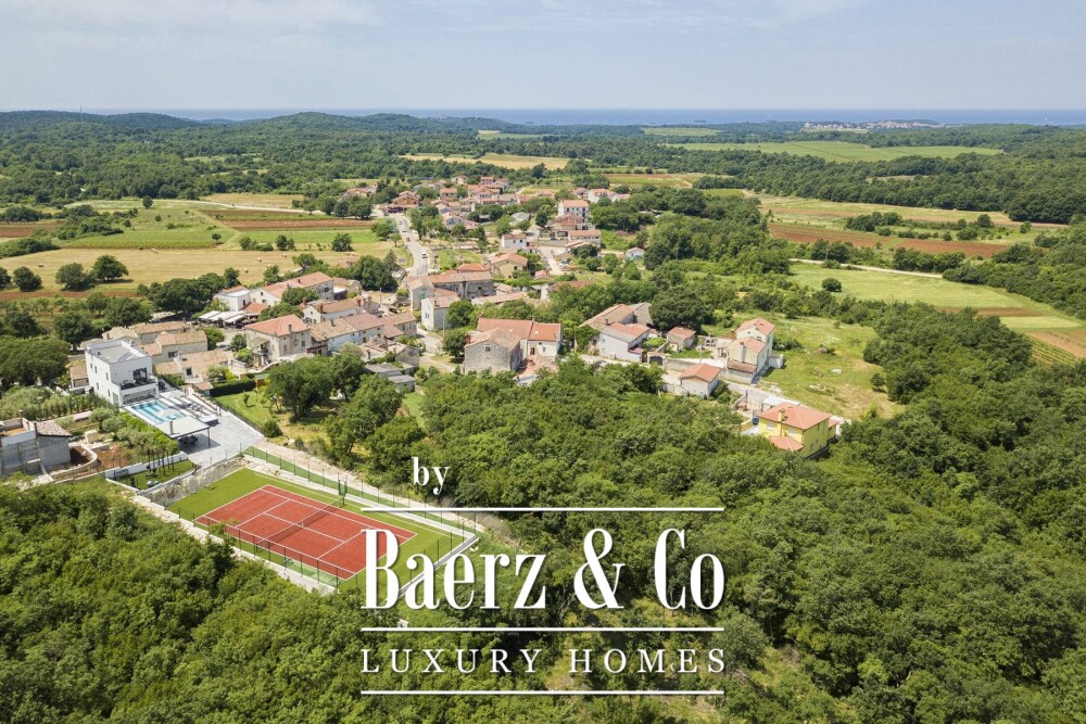 Outside, the experience is defined by nearly every consideration for comfort and recreation. An outdoor kitchen frames the dining and entertaining environment, while the swimming pool and jacuzzi anchor leisure. A private tennis court further extends the villa’s offerings. The villa Vrsar combines proximity to the Croatian coast, substantial indoor and outdoor amenities, and enduring architectural quality, inviting a lifetime of discreet enjoyment.