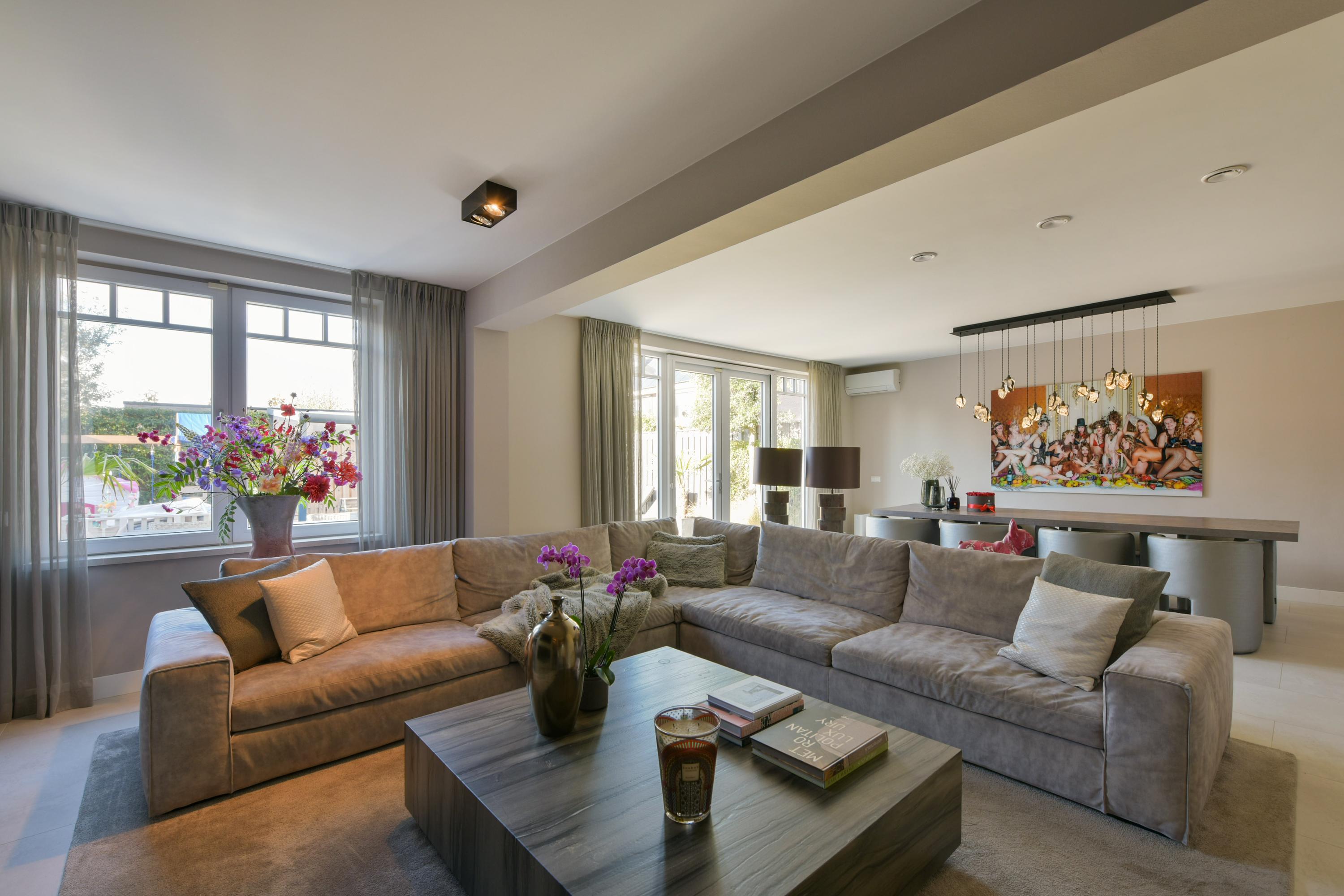 Welcome to this contemporary semi-detached villa built in 2021, offering a generous living area of 195 m². From the moment you step inside, the bright and open atmosphere immediately impresses, a feeling that flows throughout the home thanks to high-quality finishes, luxurious furnishings, and modern amenities. The property is generously laid out with four (easily expandable to five) spacious bedrooms, perfect for a larger family, home office, or hobby room. The home also features two luxurious bathrooms, ensuring everyone can start the day relaxed and refreshed. Both the front and rear provide maximum privacy, with no direct sightlines.