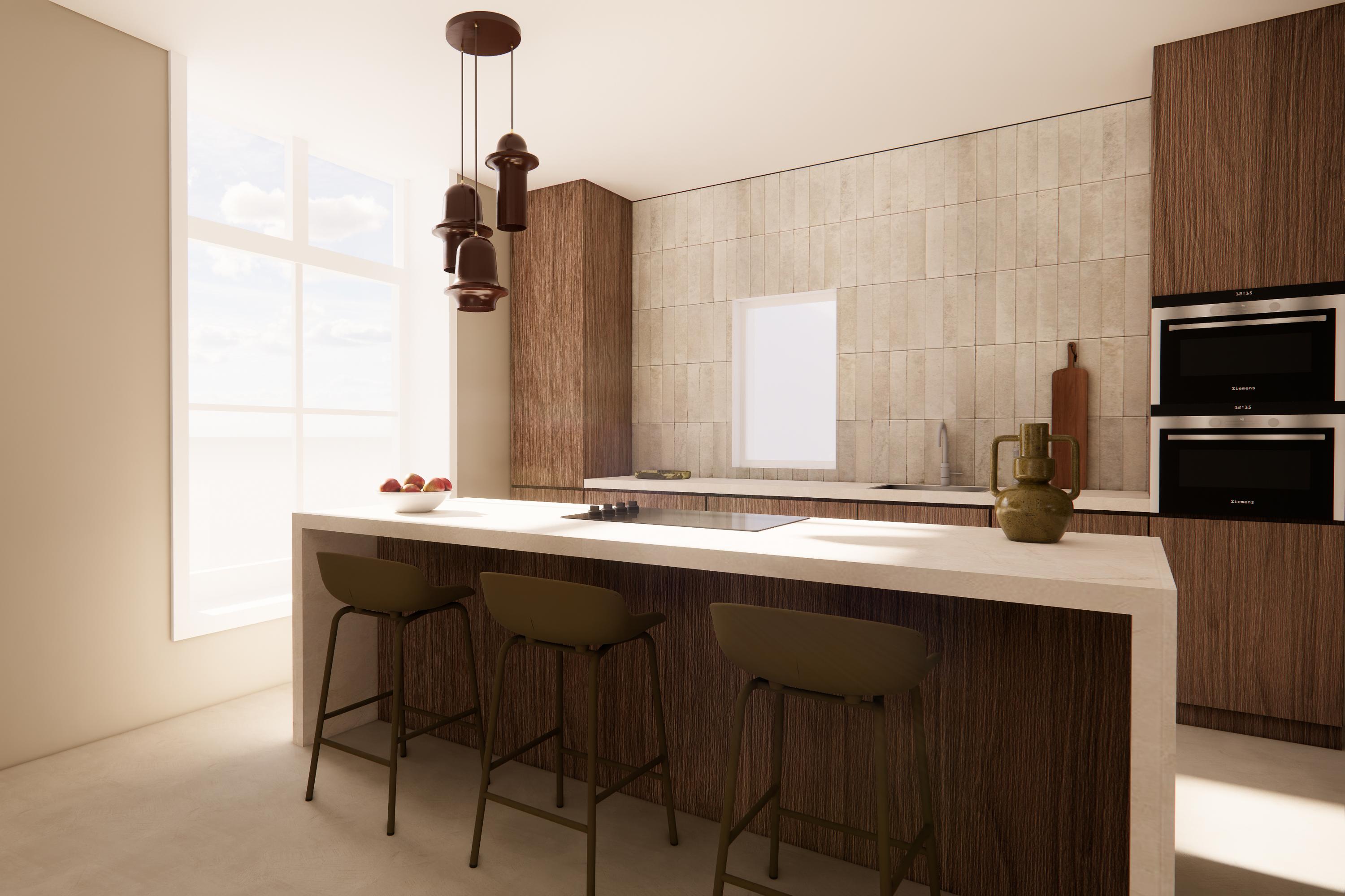 Bedroom, bathroom, separate WC and kitchen adjacent to the roof terrace on the first floor.